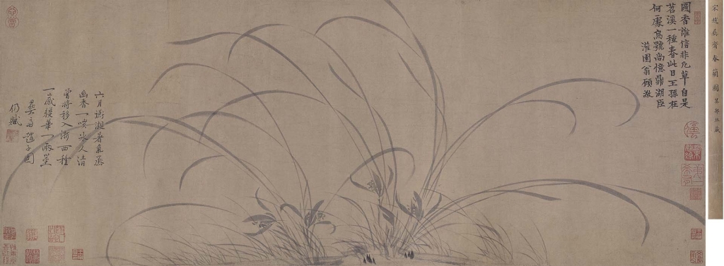 首位以畫蘭聞名的畫家是南宋趙孟堅(1199-1264),元代莊素在《畫繼補遺續》中記載其善畫花卉:「工畫水墨蘭蕙」,傳世作品《墨蘭圖卷》(圖7)中可見流利運筆呈現柔韌飄逸的蘭葉,在花葉之間營造墨色微妙變化。