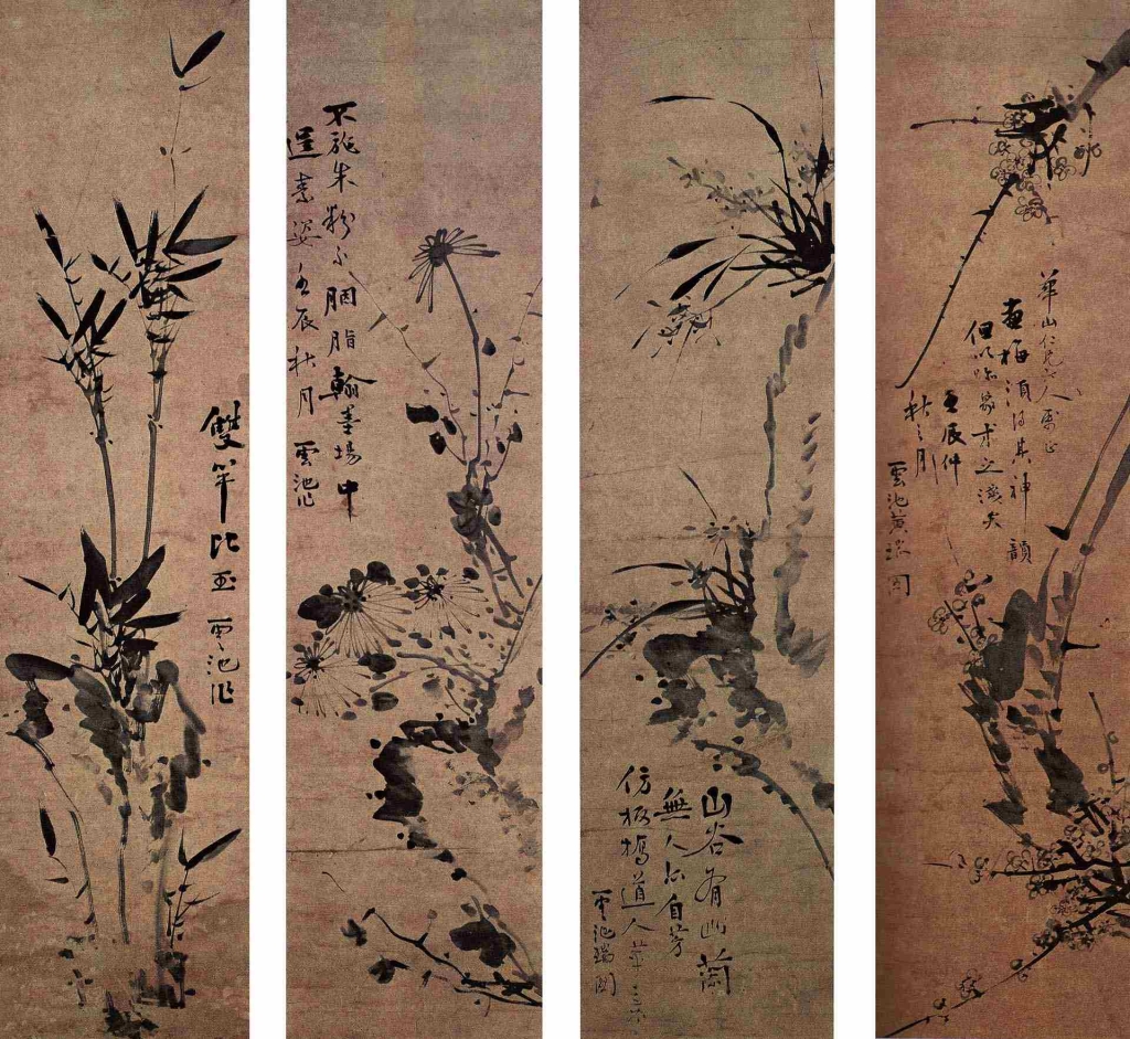 《題梅竹蘭菊四譜小引》在歷史悠久的植物畫題和賦予花木人格的寫作傳統中,首次將梅竹蘭菊並稱為四君:「夫三春舒麗百卉競芳,大都非妖豔則濃華,為俗眼睜之。而文房清供獨取梅竹蘭菊四君者無他,則以其幽芳逸致,偏能滌人之穢腸,而澄瑩其神骨,以故諸水墨家無往之求工,此四種不極其肖不止。」