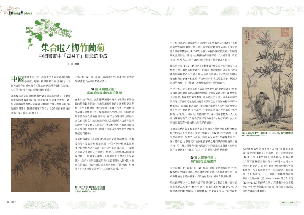本文原載於《典藏.古美術》394期〈集合啦!梅竹蘭菊──中國書畫中「四君子」概念的形成〉,作者:榮景。