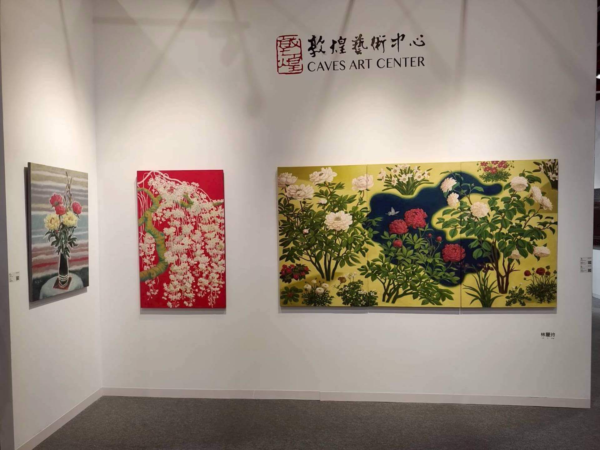 今年敦煌藝術中心呈現林麗玲、洪江波、李默父、林季鋒、董小蕙、洪平濤等六位藝術家。已包含膠彩、油彩、水墨與白描,勾勒出內在心境,以呼應外在世界:林麗玲古典細緻的油彩,花卉與人物姿態婉轉堅韌,含蓄表述生命態度;洪江波的花果枝葉與田園山景,緊扣鄉土情懷,澄澈靈動鋪展,尤其在稻田意象的描繪上,生機豐盈、樸實高潔;李默父以筆墨引領觀者踏入佛教經典與漢字美學的華麗雋永,橋接古今;林季峰以白描工筆水墨佛像穩健堅定,崇高莊嚴;董小蕙的清寂與逍遙化為鳶尾與海棠的幽雅身影,靜謐自在;洪平濤的水墨恬淡靈動,山川鍛造為風骨象徵。從傳統臨摹到抽象思維,跨越時代,沉靜深邃。