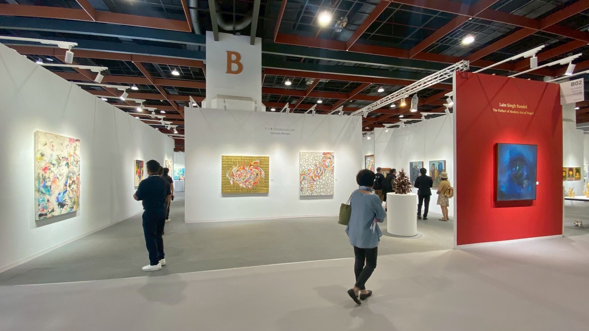 展位亮點之一,是被譽為「尼泊爾現代藝術之父」的萊因.辛格.班德爾(Singh Bangdel),出生印度的尼泊爾家庭,他早年留法,曾獲法國榮譽軍團勳章,後受尼泊爾國王邀請擔任國家藝術學院院長,而立之年定居尼泊爾,成為尼泊爾藝術現代化之路的重要奠基者。現場展出多件他的具象與抽象畫作,其中作於1970年的抽象繪畫《自然的憤怒》深具力量,這也是他的作品首度在亞洲的藝博會亮相。丹之寶畫廊將在明年的香港Art Basel推出其個展。