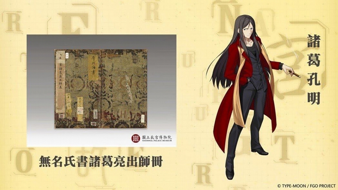 埃爾梅羅2世作為附體被召喚的諸葛孔明與臺北故宮藏品《無名氏書諸葛亮出師表》對應。(© TYPE-MOON / FGO PROJECT)