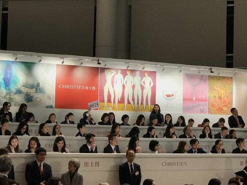 佳士得香港於11月23日晚間常玉《五裸女》以成交價3.03億港元的天價拍出,同時成為當年度香港拍賣最高價之作。(攝影/楊椀茹)