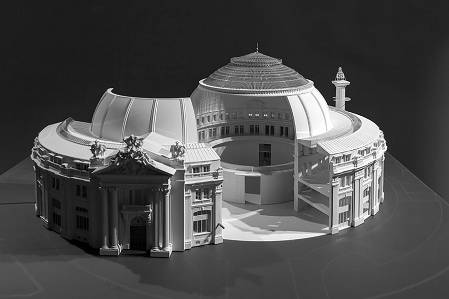 安藤忠雄(Tadao Ando)設計的「巴黎證券交易所-皮諾私人美術館」(Bourse de Commerce-Pinault Collection)模型。(取自Bourse de Commerce-Pinault Collection網站)