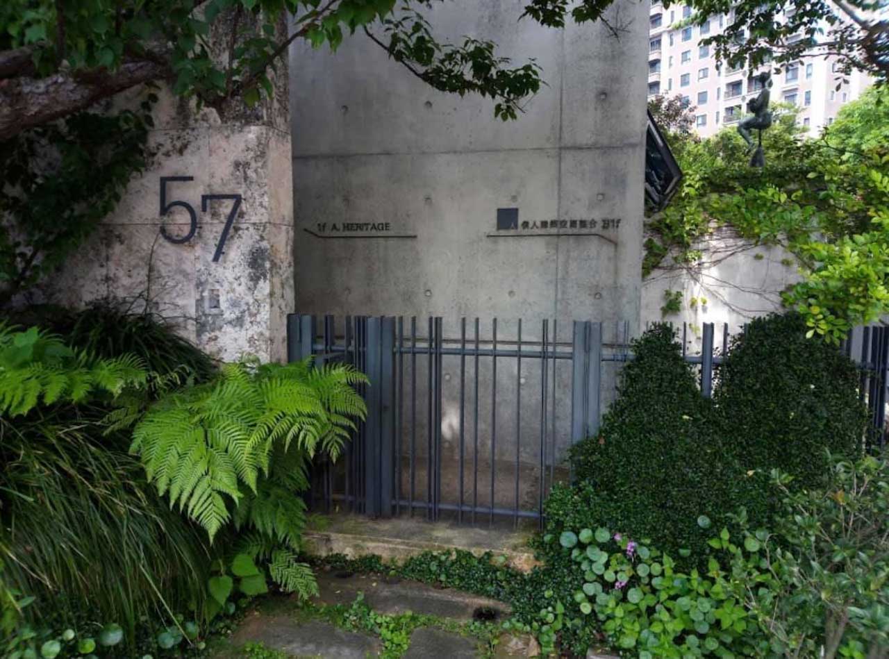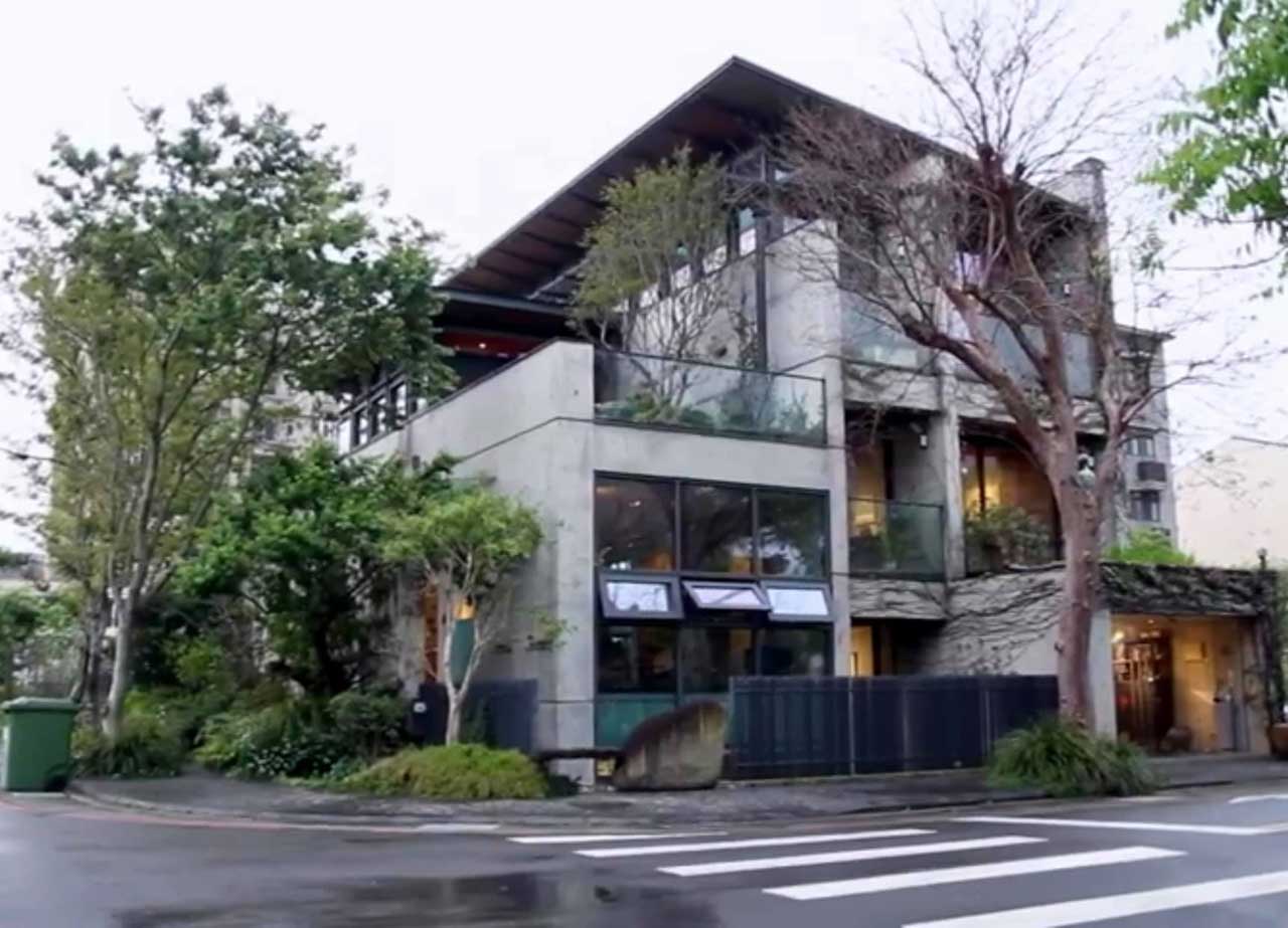 襲園建築,善用錯層設計,全景的落地玻璃窗與玻璃圍欄,讓視覺更通透。人行道以不規則的安山岩片,拼成冰裂紋,細膩工法是建築的意匠之在,而轉角的鳥踏木,更是都市暫留的節點。