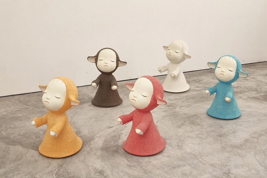 奈良美智《小朝聖者(夢遊娃娃)》,壓克力漆、棉布、玻璃纖維,1999。(富藝斯提供)