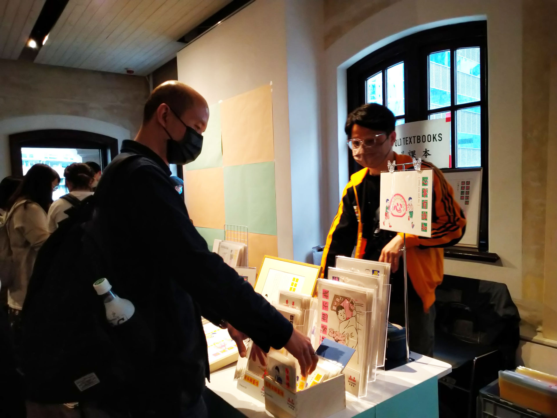 劉智聰形容銷售成績正常,其中孔版印刷的舊課本插畫卡最受歡迎,相信與內容以廣東話寫成有關。以香港消失的地標作為背景的系列,主題與日常生活關係密切,觀眾共鳴也較大。他感嘆,疫情打亂節奏,過去一年無法再到海外參展,本地舉行大型實體藝術活動也得來不易。因此,他一直十分期待是次書展,早於開幕兩年前就準備作品,「能夠面對面與觀眾溝通是我最珍惜的時光,可以直接知道觀眾對作品的感受、喜好,作為日後持續創作有一個很有價值的參考資料。」