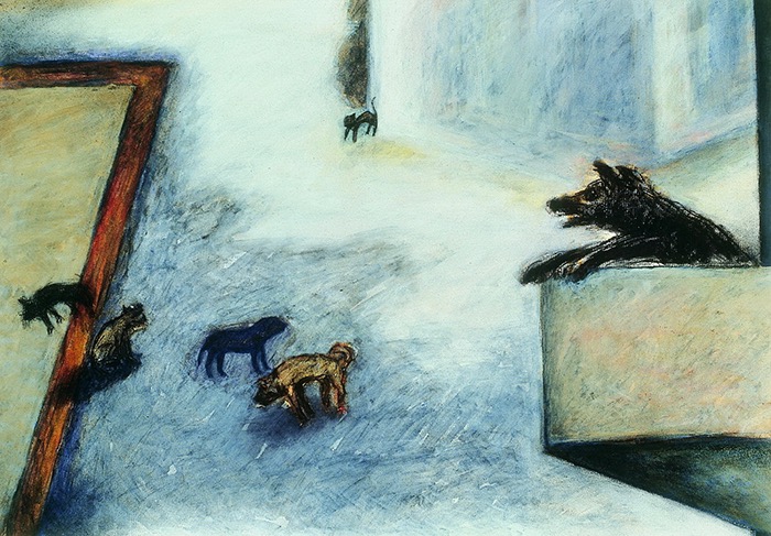 這是以狗來寓意政治的創作面向,可是還有一個面向,來自於對狗的生命,以及對於死亡本身的凝視,特別是收容所裡面的狗。
