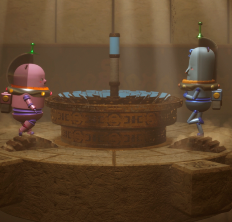 在動畫技術上我們也加強趣味度的提升,在談論到許多再生能源時,勢必需要搭配很多需要擬真呈現的效果,譬如太陽能,就需要更多反光與光透質感,地熱能需要許多岩漿粒子與蒸氣噴發,海洋能就需要處理許多水流、浪花的模擬,這些在傳統動畫製程上都需要繁複且耗時的運算資源,在這次在蓋亞能源遺跡之謎的製作上為了追求更細部的質感與執行效率,將製作軟體換為目前世界知名度最高、應用最廣泛的游戲引擎之一Unreal Engine,將會呈現出更加擬真的光影跟質感在觀眾面前。