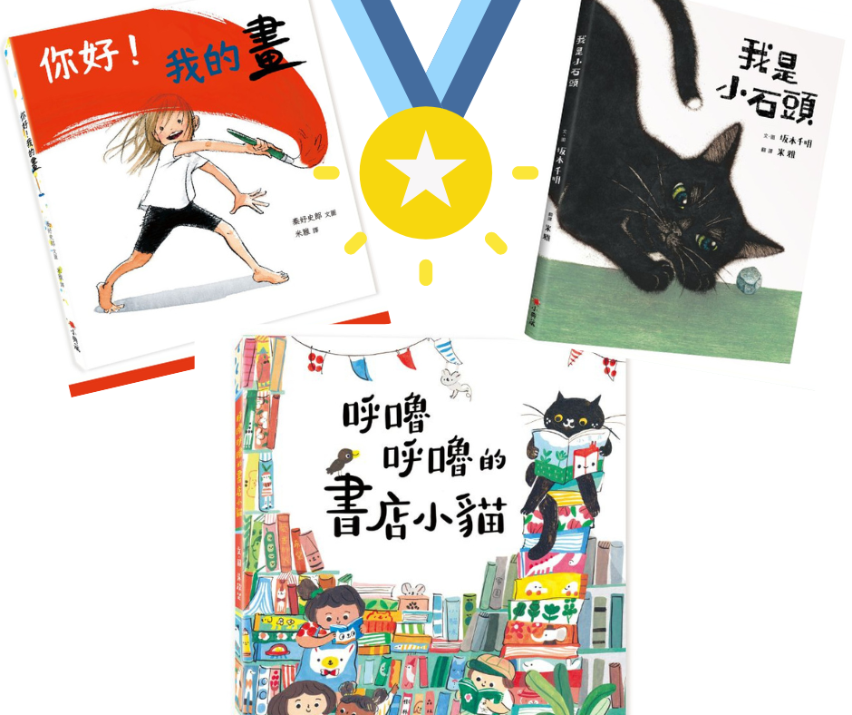 小典藏入選3本書!分別是《呼嚕呼嚕的書店小貓》、《我是小石頭》及《你好!我的畫》!拍手!