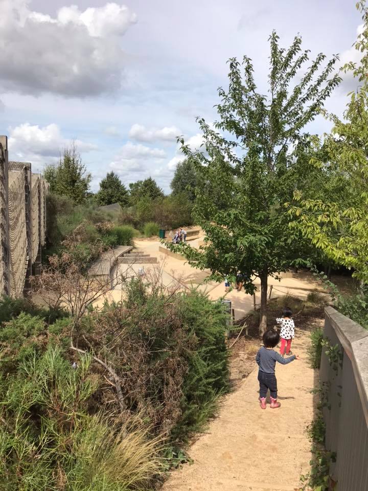 景觀設計需要提供「更野」的城市自然空間。越野,孩子越能進行探索、創意及冒險的遊戲。孩子在種滿原生種植物的空間中,是能感受四季變化和自然演進的。英國翻騰灣遊戲場的設計師,甚至刻意在空間中種植「帶刺」植物,讓孩子在「仿野外/原生場域」中玩耍穿梭時,會像在真正的大自然,認知到大小岩石歪斜和樹皮散落沙土泥濘旁,不是所有植物和生物都是「無傷無害」,而必須提高人類本能的敏銳警覺雷達,練習逐漸喪失的「風險評估能力」 (圖 10)。