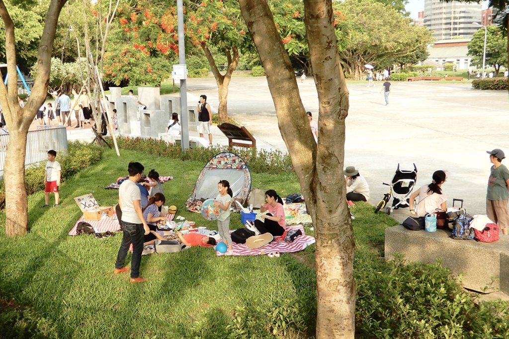 圖6:華山遊戲場現況植栽,孩童玩樂及民眾聚集草地景象(圖片來源:境觀設計)