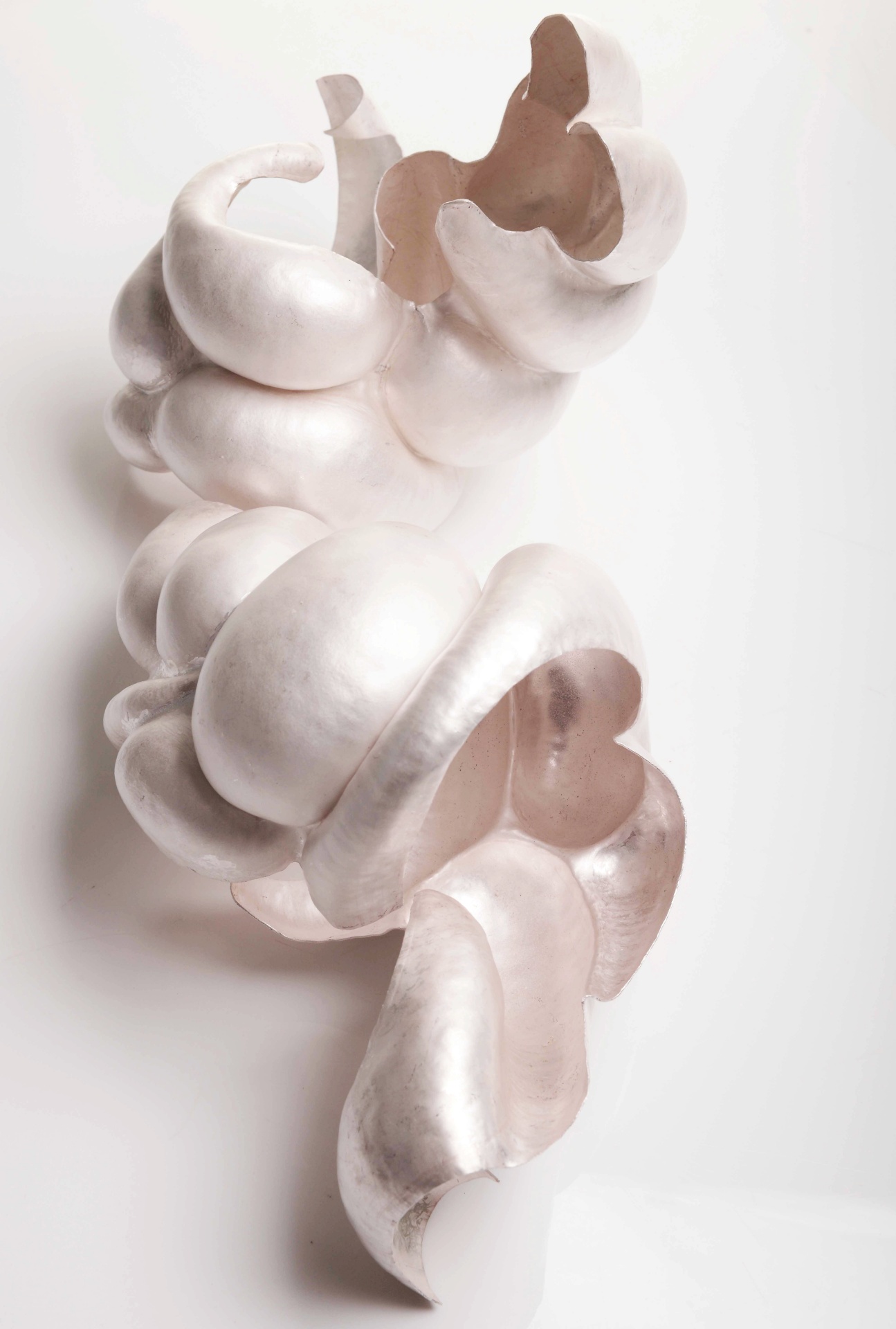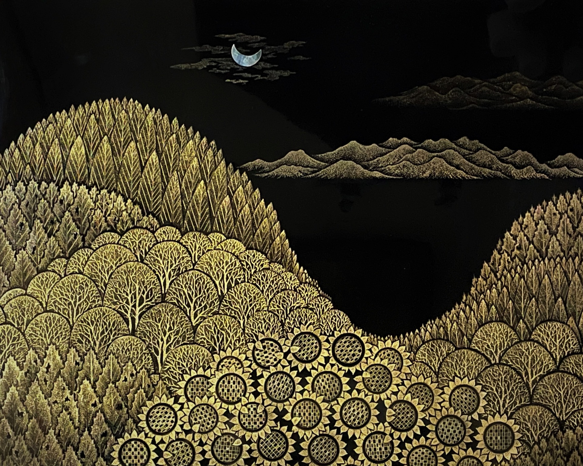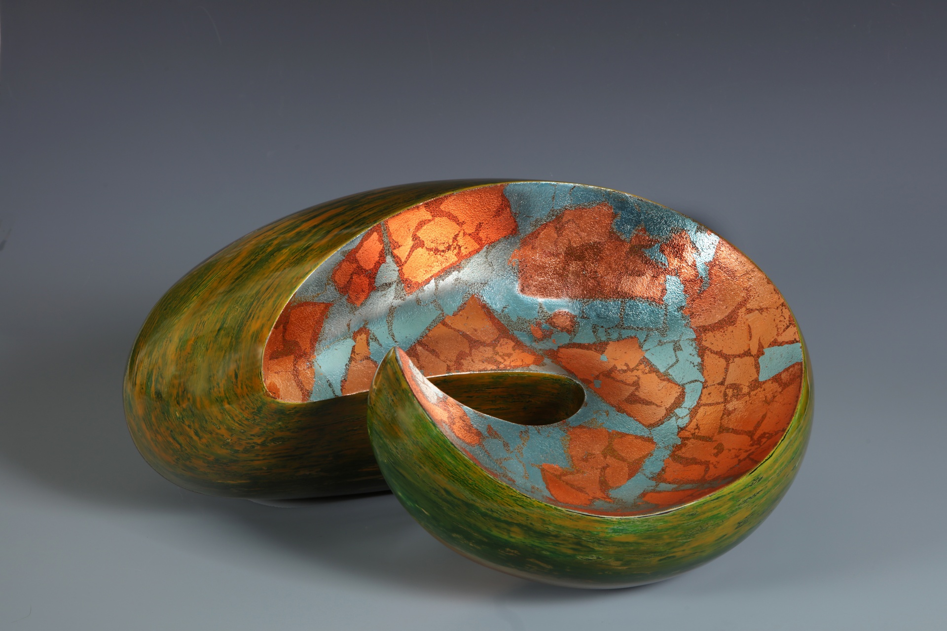 在網路世代與 Web3 思維盛行的此刻,「去中心化」的多元性觀點,也讓工藝藝術的詮釋有了嶄新的開放性。廖偉淇的金工作品, 將平坦的金屬媒材,塑造出立體蜿蜒,體現其鍛敲過程中,傳達形而上、精神層次合一的融合境界,作品的抽象、自由的造型,開放觀者自我詮釋和想像。漆藝藝術家王賢民,強調漆藝創作即是時間的藝術。他透過漆藝不斷層層疊疊的工藝性、行為反覆的儀式性以及靜心的調息過程,作品具有內斂閃爍與華美之感。彭坤炎的「堆漆」創作,亦是經由繁複龐雜如宗教儀式般的過程,每天僅能以一公分的厚度前進, 緩行堆建成形。