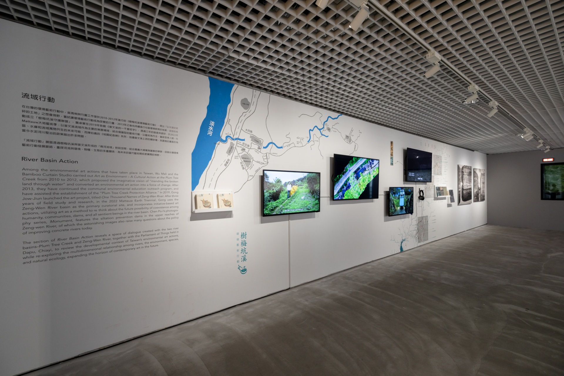 此外,美術館以外的「場外對話」也是這次展出的重點。藝術家彭弘智與江之翠劇場合作。隨著樂師與演員的腳步在基隆現地中找尋與異世界溝通的方式。吳瑪悧《樹梅坑溪環境藝術行動》與龔卓軍《千重溪:曾文溪的一千個名字》,彷若形成「兩河流域」般的對話。