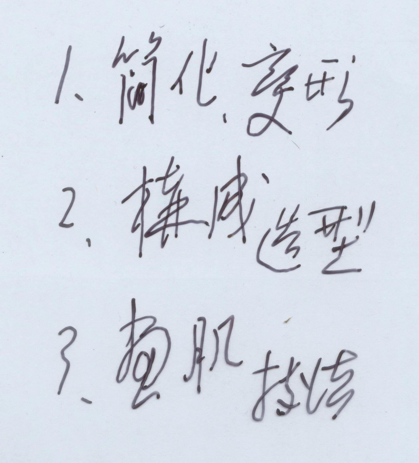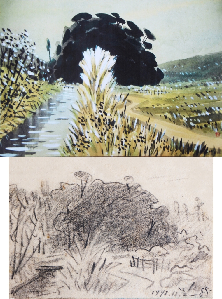 蕭如松非常注重簡化的思考邏輯,把畫的對象融解變形,把繁雜無意義的類裝飾除去,拋棄說明性的細節,以便更接近造形的本質。蕭如松的簡化是在於畫面的表現,但把握了準確的重點,因此使畫面的內容更凸顯豐富之感。蕭如松的敏銳觀察,件件作品中即可窺知,這就是他否定虛飾,訴諸直覺的樸素傾向。蕭如松追求造形的本質,簡化再變形是必然的過程。從送給學生的親筆略畫集,就可看出他的用心。