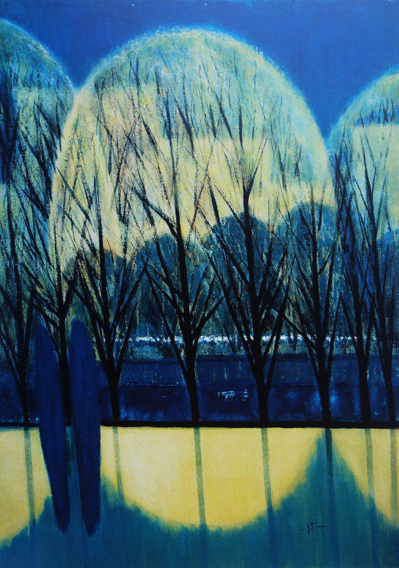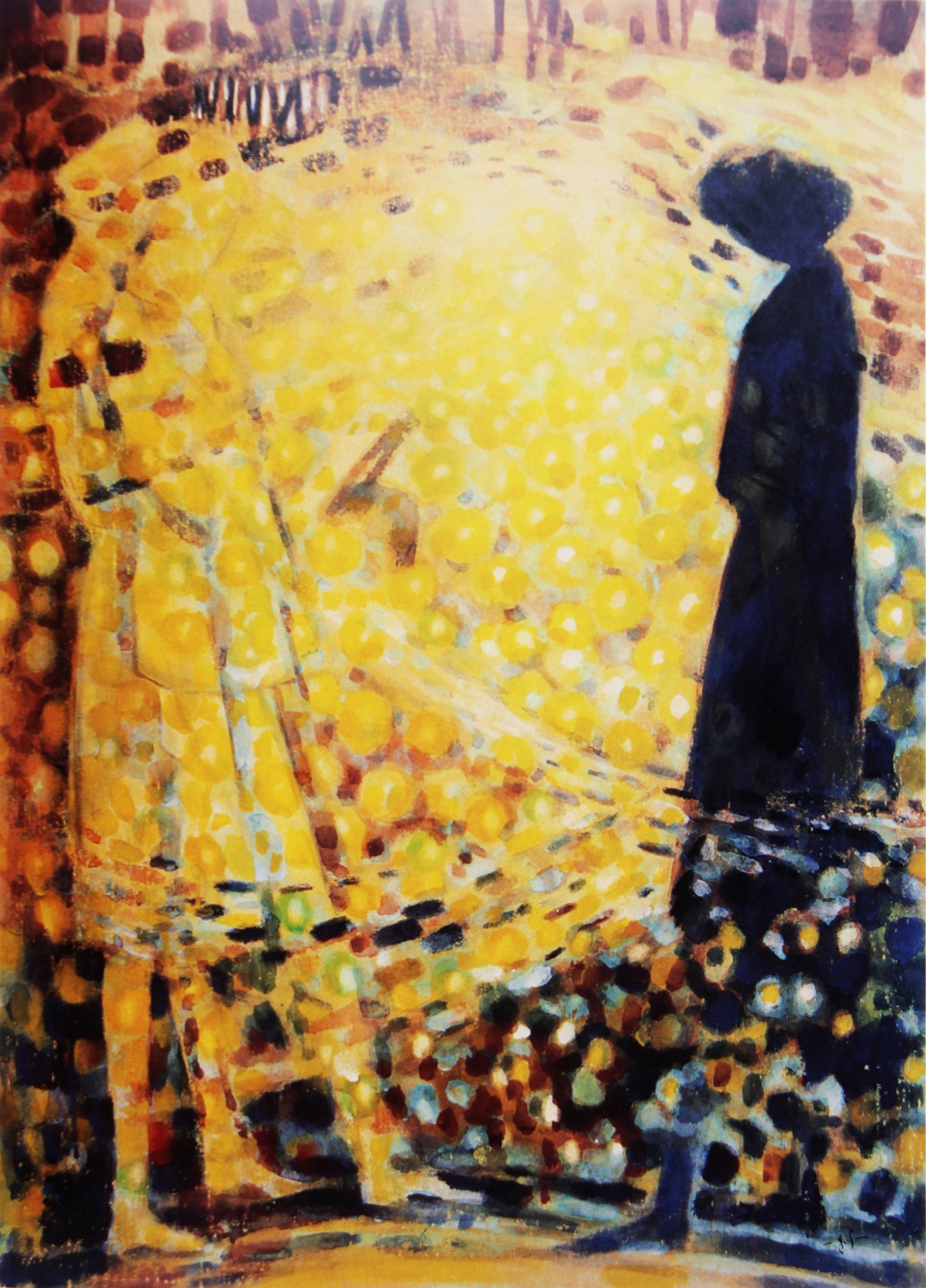 蕭如松每天還沒天亮,就到學校美術教室擦桌備課,學校上完課後,仍留在美術教室,要到天黑了才肯回家。走過華燈初上的夜市攤,橙黃的燈泡光線佈滿黃橙橙的椪柑堆,讓蕭如松聯想到畢卡索的版畫《燈下靜物》。蕭如松心想,那麼偉大的畢卡索作出那麼好的作品,我也要做到那麼好的作品,於是完成了《夜市》。