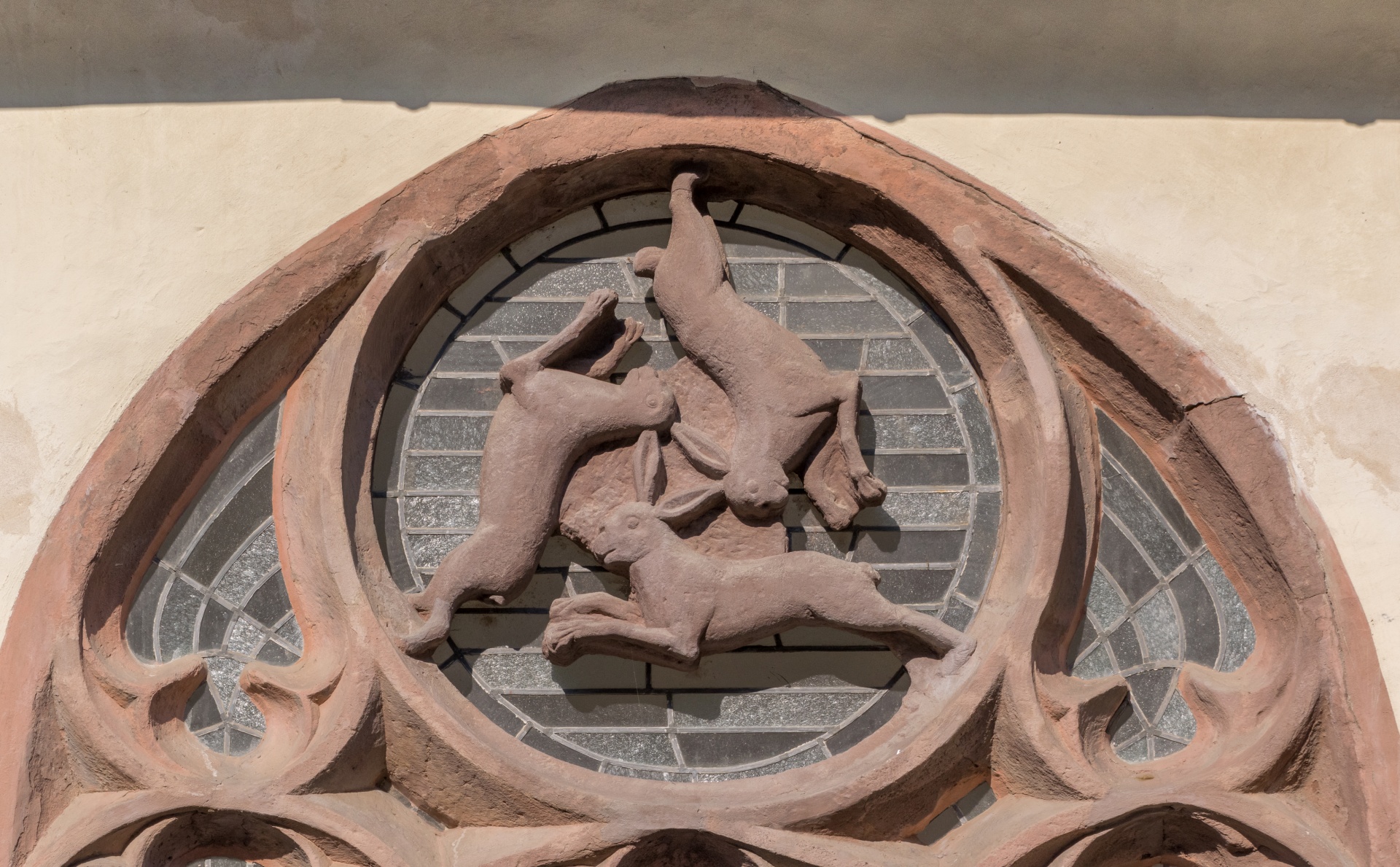 然而,在諸多兔子的圖像當中,有個圖像東西方皆有,其圖像巧思令人稱絕,但卻難以考據起源與內涵。這個特殊的圖像即是「三兔共耳」:三隻側面形象的兔子,共用三隻耳朵,耳朵排列成正三角形。在歐洲地區,「三兔共耳」不僅是裝飾紋樣的一種,更被看成是某種「圖像謎題」,比如早自16世紀的荷蘭版畫中即有如下內容: