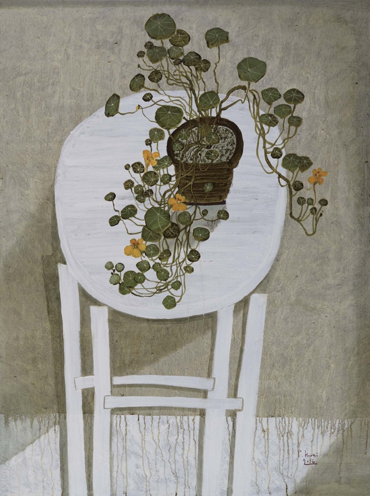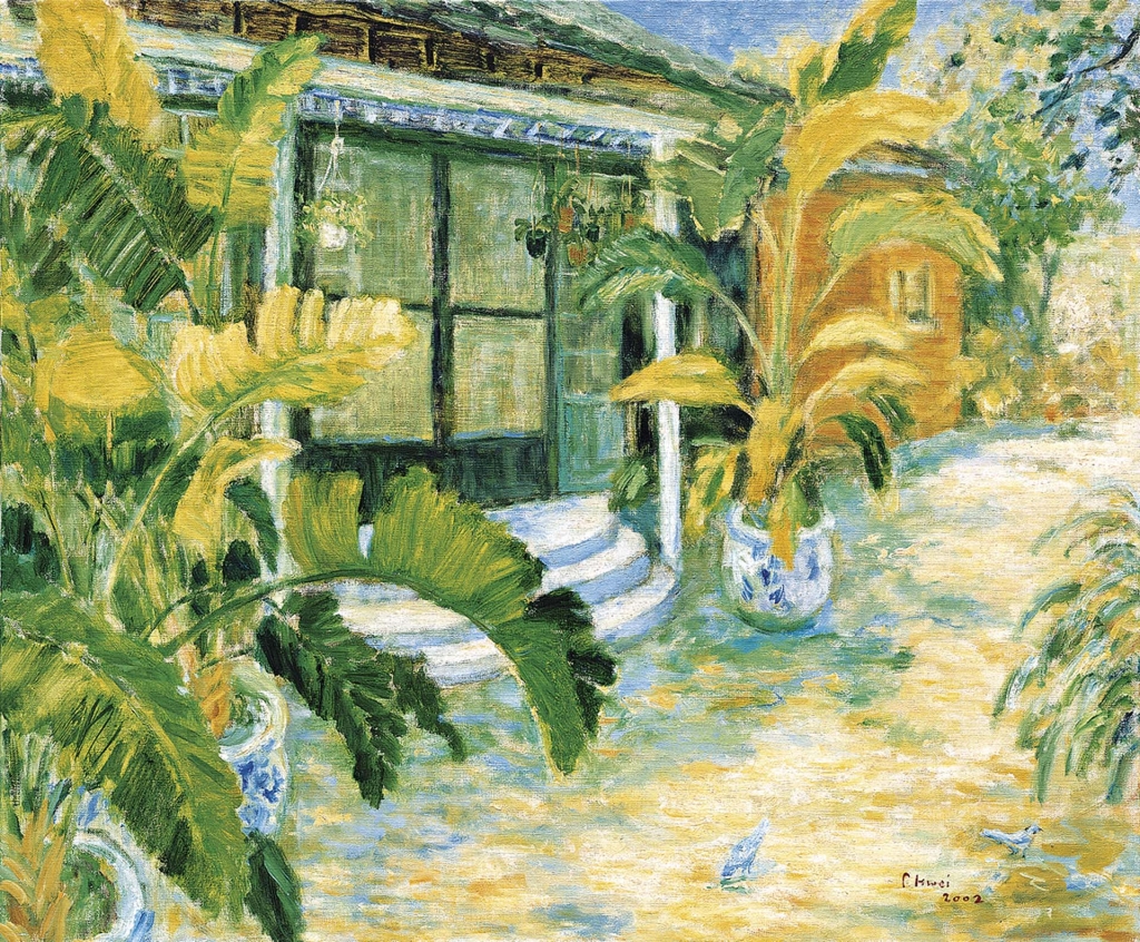 王老師對小蕙評價很高,但有幾點觀察讓我頗感訝異,第一,他認為小蕙將來在藝術史上一定會有其定位,甚至直指她的藝術成就在常玉之上。我雖然也認同他的看法,但畢竟只是單方面的自我觀察,不足與外人道,也避免有過於自我膨脹之嫌。其二,他認為小蕙的作品中有一種「不刻意」的特質,沒有想要表現什麼特別的創意企圖。我的解讀是這就如同她的小院子,沒有刻意地維護經營,卻出現許多隨興生長的自然意趣。這使我想起小蕙曾對一些年輕藝術家的建議,她說不要老想著「創作」,多花一點時間去欣賞與感受會更有助益。