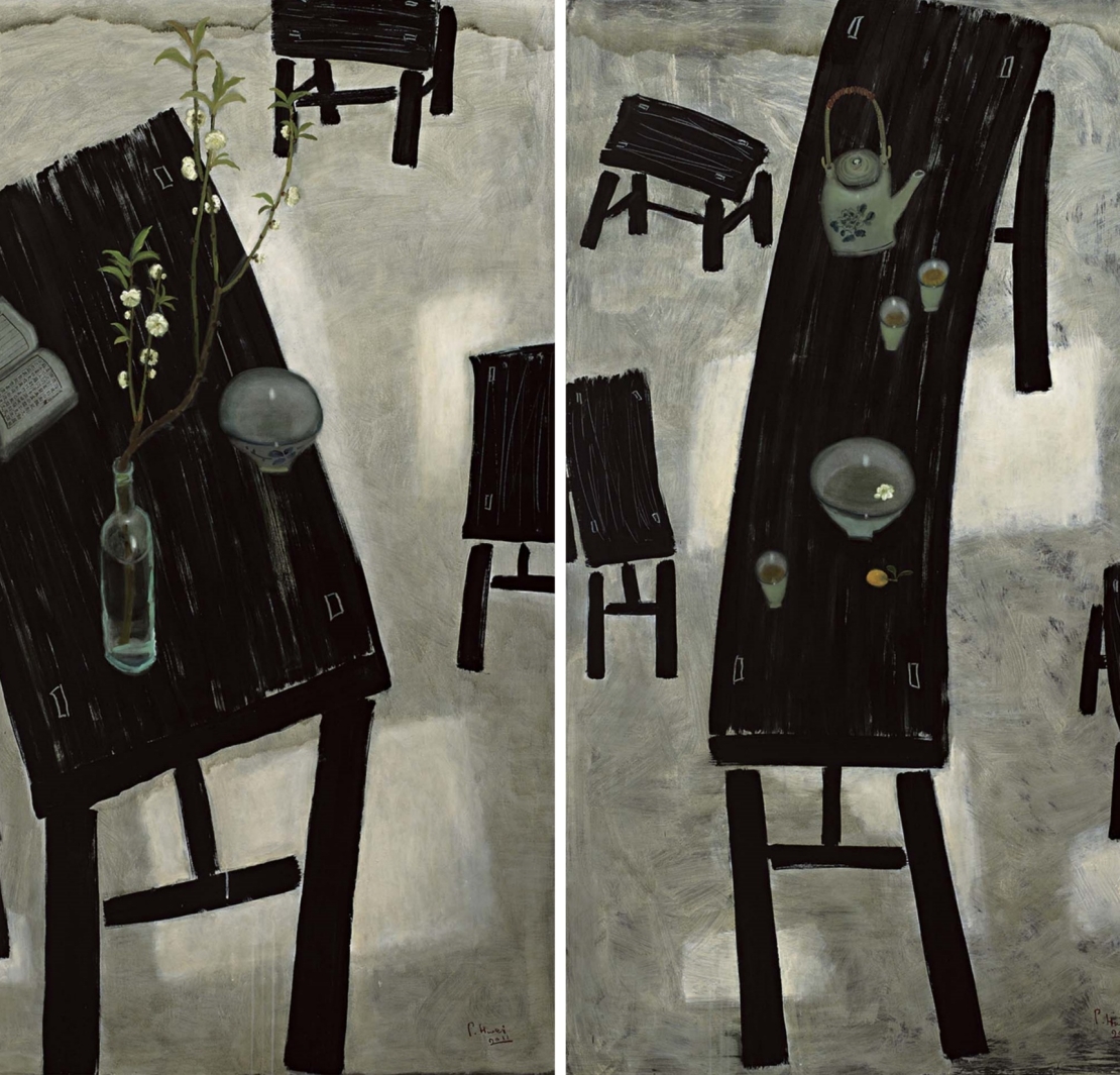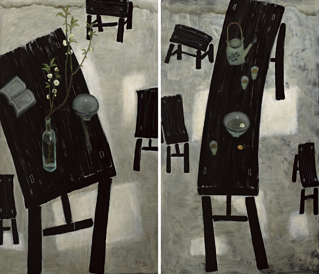 第三,王老師特別強調小蕙畫作中的光線,那不但是一種真實生動的存在,也是畫面的巧妙結構元素,他說「所以不用懷疑,那就是畫家要表現的創作內容」。這些觀察深入細緻,非一般論述所能見,由是不禁對王老師有知遇的感佩。實際上就我的理解,小蕙在多年前就已經徹底消化印象派的光線色彩,這使她解決了在平面中表現空間光影的難題,也成為她日後創作的重要基石。曾經有人說,小蕙的創作模倣了常玉與王懷慶,但實際上三者是完全不同的創作理念。這裡牽涉到複雜的美學問題,在此無暇細說,但我可以簡單做一個區隔,以說明他們之間的差異。常玉的創作是有感覺的「符號」,王懷慶的創作是有感知的「造型」,董小蕙畫的則是有感受的「生活」。