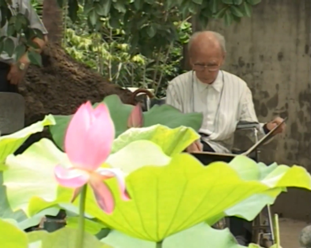 循著作品,周美玲慢慢打開林玉山心房,勾勒出「荷花」這個重要意象。林玉山1930 年發表的《蓮池》(現藏國立臺灣美術館),在日殖時期得到臺展特優賞,日後更獲指定為國寶。周美玲以導演的直覺,希望帶林玉山到荷花池畔走走,拍攝與林玉山現場互動的畫面,可是他的家人有點擔心這個提議。周美玲指著當時訪問的合影解釋林玉山的身體狀況:「你看我們的穿著,訪問時是荷花盛開的夏季,天氣很炎熱,工作人員還穿無袖。可是林玉山從頭到尾都是長袖長褲,領子還扣到脖子。」她深深明白林玉山家人並非過慮,但仍不放棄,小心徵詢林玉山外出意願,想不到老人家欣然答應。