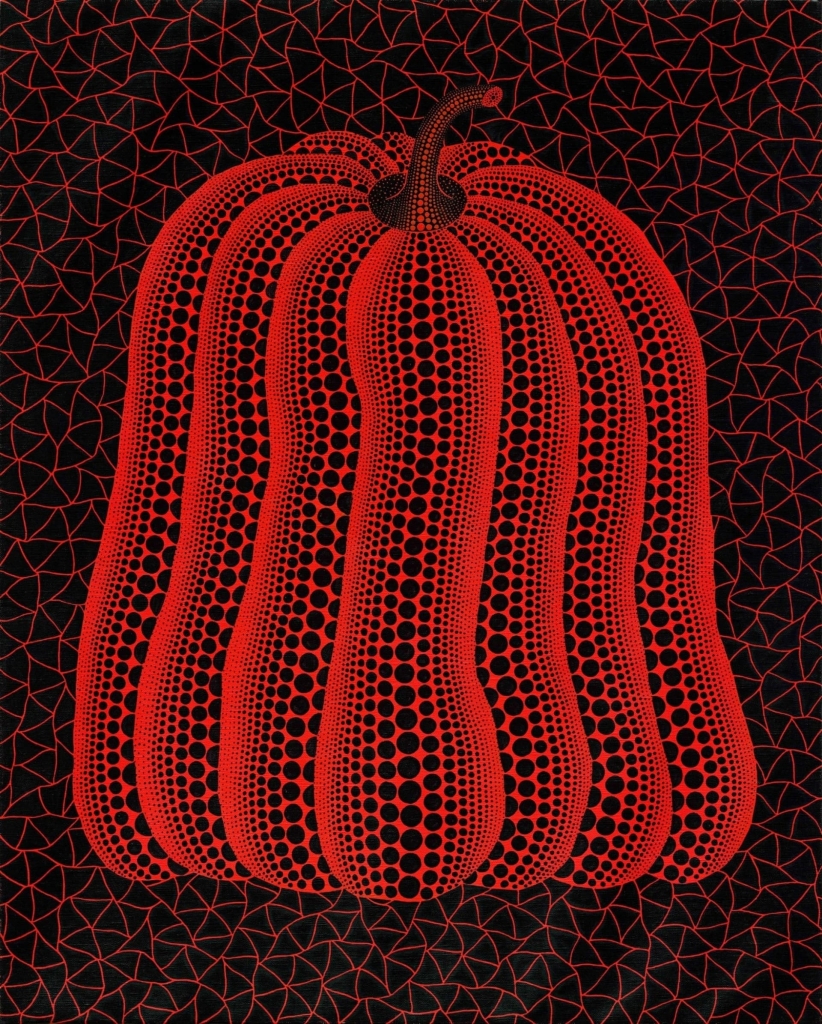 草間彌生(Yayoi Kusama)創作於2005年的《南瓜》,為市場上較為少見的黑底紅彩,以2,500萬港元落槌,成交價3,000萬港元成為本場亞軍。而另一件以淺金色顏料勾描而成的《無限之網》以288萬港元成交價易主,排名第四高價。