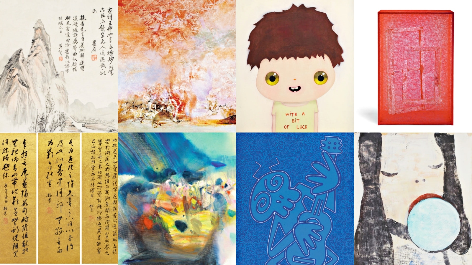 日本現當代藝術拍品亮點如:塩田千春(Chiharu Shiota)創作於2021年的《存在的狀態(窗扉)》為她最具標誌性的紅色絲線立體作品,一大一小窗框懸浮其中,濃縮藝術家對於存在的詮釋。而奈良美智(Yoshitomo Nara)的《無題》為早期留學德國期間的紙本作品,以簡約風格勾勒出小女孩一瞬間的神態,並以渾圓的藍色泡泡糖呈現出童趣活潑的趣味性。於二戰後崛起的日本具體派,強調創造前所未有的藝術,在本季徵集到多位核心成員,如:元永定正(Sadamasa Motonaga)、白髮一雄(Kazuo Shiraga)、嶋本昭三(Shozo Shimamoto)、上前智祐(Chiyu Uemae)等作品,皆以各自獨特的手法帶來全新的藝術面貌。