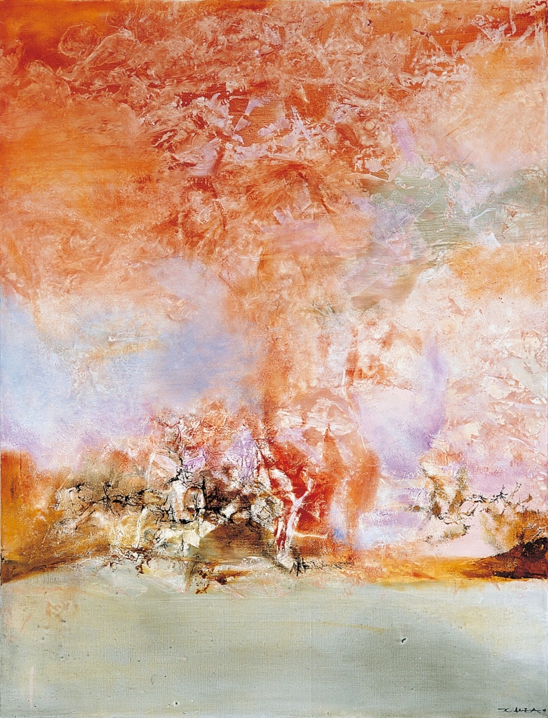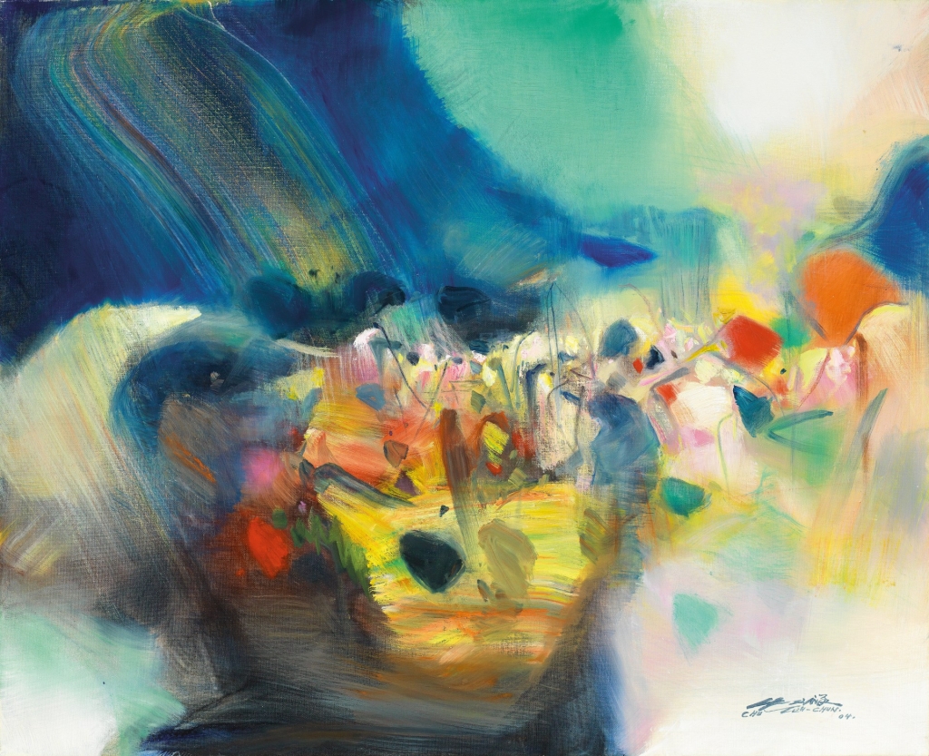 在華人經典板塊,趙無極《22.04.1997》以光燦的澄黃為主調,與下方的黛綠共同鋪陳出充滿生之律 動而不顯凝滯的空靈境界。而朱德群在2004年創作《變幻》時已逾八十高齡,以藍色與橘黃色系形成的對比,以繽紛的色彩揮灑出極富律動感與音樂性的抒情詩篇。至於中國二十世紀當代藝術領軍人物曾梵志五米巨作《無題(三聯屏)》描繪在山谷周圍茂密生長的野草,線條錯綜如密度集中的網絡。藝術家脫離早期的表現主義,而更逼近中國傳統藝術的抽象與精神;以暗色調描繪狂放不羈的野草就像一張網,他的作品表達出生活在孤立混亂的社會中人們的情感和心理狀態。