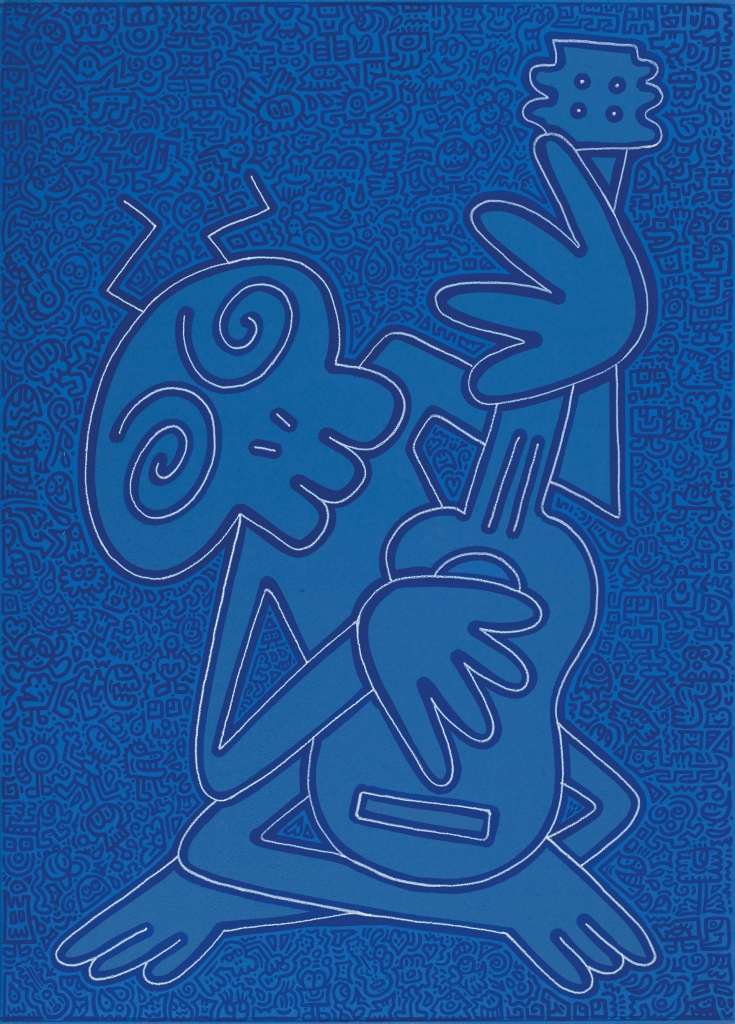在西洋現當代藝術部分,法國藝術家貝爾納.畢費(Bernard Buffet)以簡練俐落的線條勾描出帶有東方感的《藍色咖啡壺》;潮流藝術霸主KAWS擅於結合漫畫和流行文化的標誌性符號,本季上拍的《作為朋友》主體形象強烈,彰顯它跨越族群與世界溝通的符碼;美國抽象畫家艾迪.馬丁內斯(Eddie Martinez)的《無題》就地取材當代文化元素合而展現豐沛的生命力與創造力,亦呈現出獨一無二的創作風格。而英國鬼才藝術家塗鴉先生(Mr Doodle)的名畫系列《Doodle 吉他手》取材自畢卡索藍色時期的經典作品《老吉他手》,整幅畫面以藍色打底,所描繪的概念式人物盤腿而坐儘管看似困頓卻又妙趣橫生,Mr Doodle 以他獨特且新穎的個人視角重新詮釋了個人風格強烈的塗鴉藝術;西班牙藝術家拉法.馬卡龍(Rafa Macarrón)的創作往往發想自兒時記憶,或是如孩童對外太空的各種想像,《海洋》一作即反映其充滿童趣的畫風。