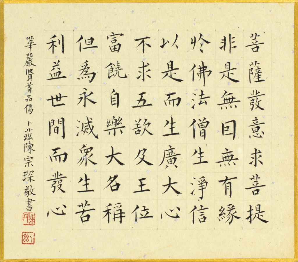 書法佳品,有著卜茲經典的狂草作品《神乎神,客在門》,也有《節臨憨山老人夢遊集》,及端正楷書之《華嚴賢首品偈》,一展卜茲不同且多變的各時期藝術風貌。董陽孜將其書法的陽剛及柔和之美展現於金宣紙的《百福》四折屏風和《心如水》。前者將「福」字多變的形態,為世人寫下「一同享福」的祝願,並展現其書法功力之底蘊 ; 後者三字相鄰其遠觀猶如山水畫,董陽孜將書畫合一渾然莫辨,隱含老子的「水善利萬物而不爭」之意。