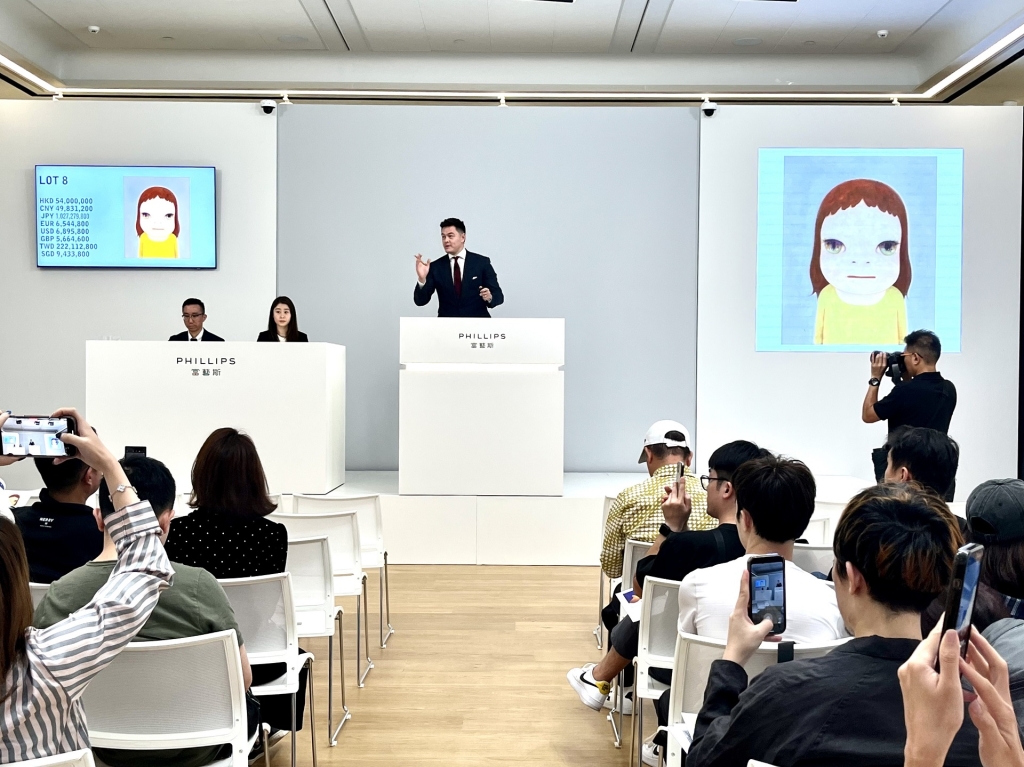 富藝斯(Phillips)於10月6日在香港西九文化區的亞洲總部舉行「二十世紀及當代藝術晚間拍賣」,共呈現23件拍品、僅1件流拍,成交率近96%,成交總額達1.9億港元。本場由首度登上拍場的奈良美智的《不就是不》領銜,拍出6,553萬港元成交價,為晚拍之最。其他焦點作品,如:尼古拉斯.帕爾蒂的《靜物與橄欖》則拍出2,586萬港元、劉野的《最後巴洛克》以2,223萬港元易主。