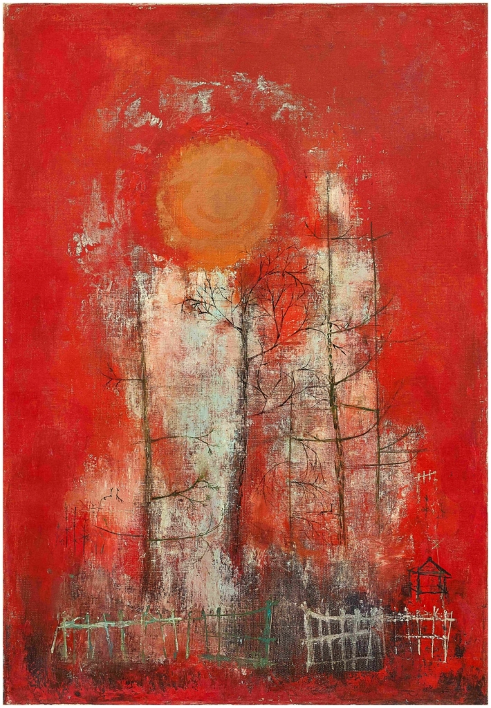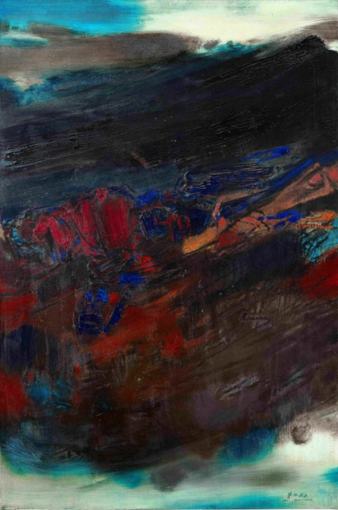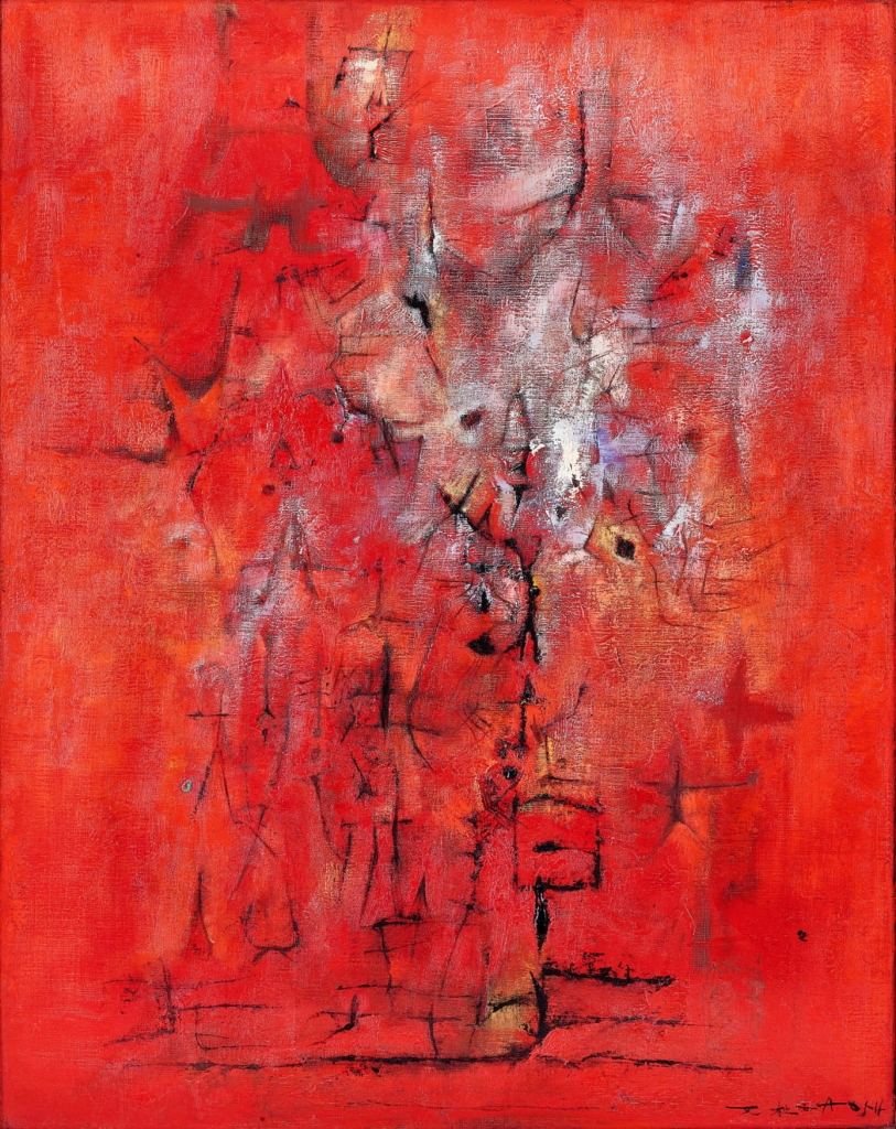 本場仍以趙無極的作品最受買家青睞,由排序最先上拍的《盛夏森林 – 05.07.54》領銜,此作創作於「甲骨文時期」的初始階段,在豔紅背景之中帶入太陽、森林、盛夏等元素,以探索抽象、自身與自然之間的關係。而同樣在1954年,趙無極於美國辛辛那提美術館舉辦回顧展,當時的《LIFE》雜誌更為其製作專題報導,也成為他活躍於歐美藝壇的重要見證。拍前估價待詢的此作自2,800萬港元起拍,由香港專家鄧穎詩(Jestina Tang)為電話委託買家出價至3,600萬港元競得,以4,401萬港元成交價為現代藝術晚拍的最高價之作。此外,趙無極的《無題》(Sans titre)和《15.03.60》皆拍出1,618萬港元成交價,同列本場第三名。