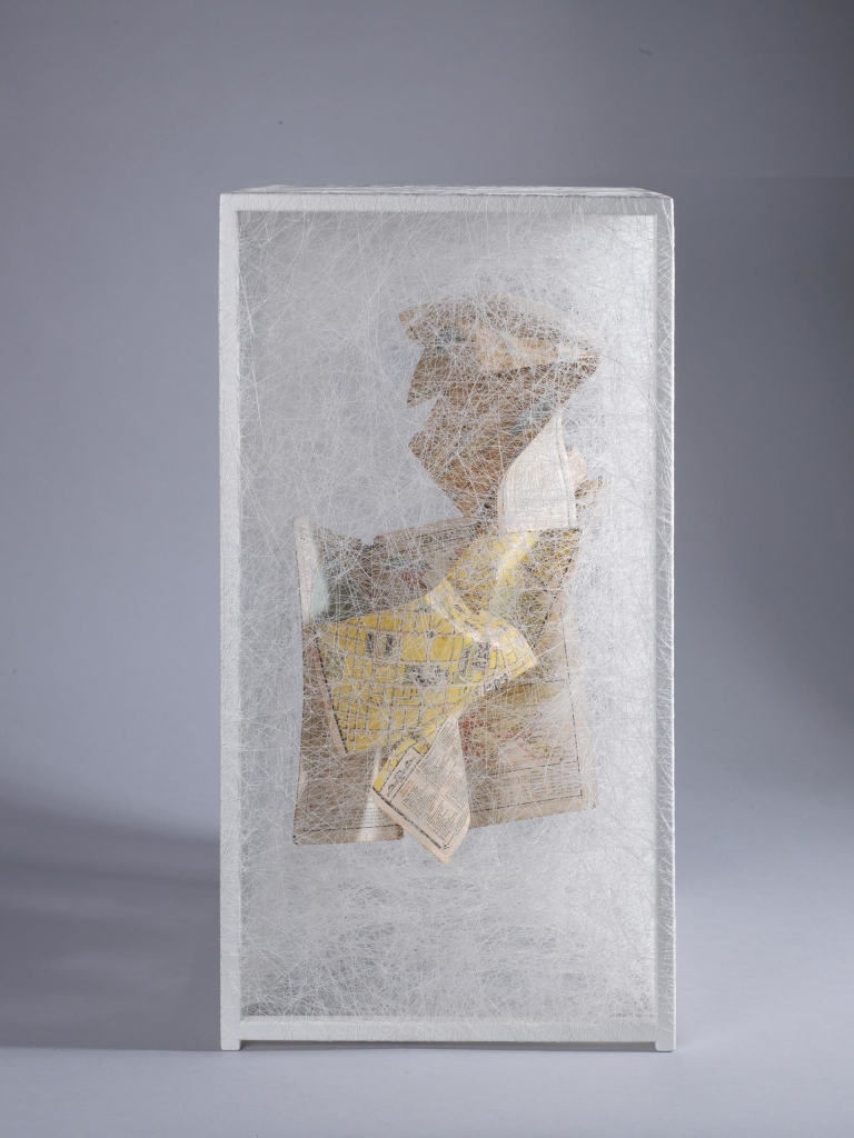 ,立體作品《存在的狀態(地圖)》以白色紗線代表新生與永恆,體現出藝術家生命經驗中數度徘徊於生死交關的生命觀;此外,還有以黑線創作的《存在的狀態(地圖)》反映兒時所見的火災回憶。奈良美智的銅雕《吉祥天女》習作,為回歸手感的陶土雕塑,幸福天女是佛教守護神的諸天之一,原為印度教女神拉克希米(Lakshmi)引入佛教並帶有幸福與美麗的象徵,是藝術家於日本震災之後對生命的重新思考與祝福。而名和晃平(Kohei Nawa)的《王座》曾於羅浮宮金字塔地下大廳展出,創作靈感也啟發自亞洲傳統宗教儀式,引發觀者對權力體制的深層思考。而此作結合3D列印、漆藝以及金箔技術等當代與傳統技法共同打造出金燦耀眼的王座,亦為藝術家對文化、形式與界限的探索與超越。