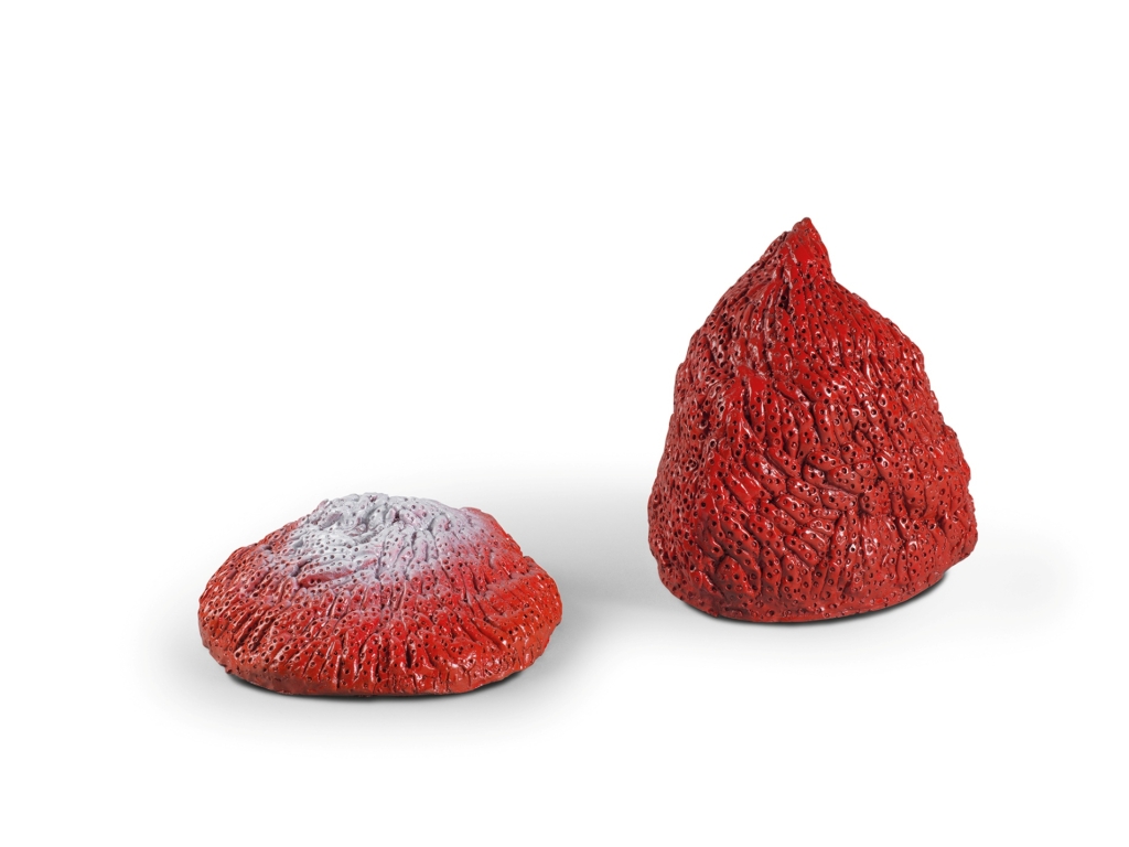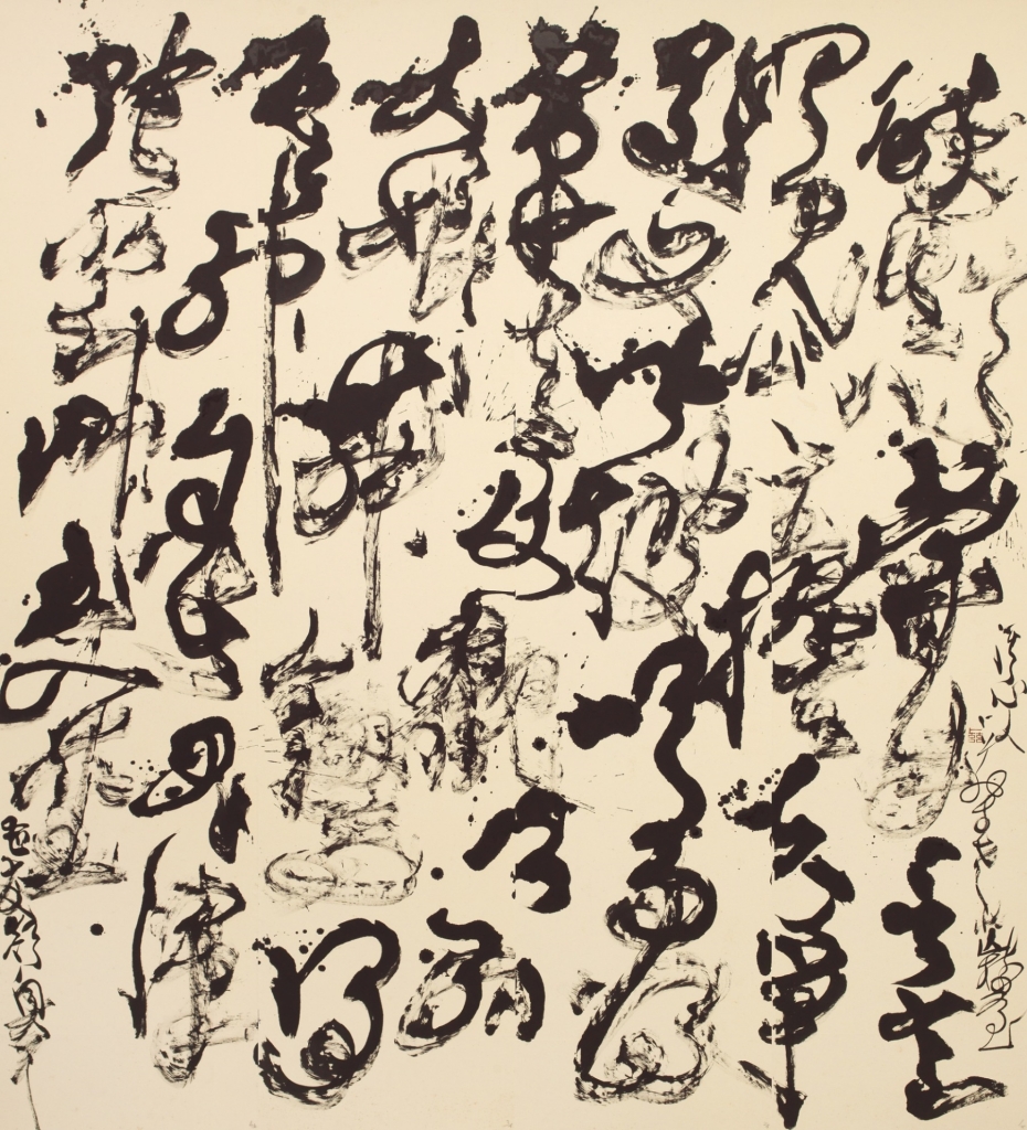 在日本當代藝術板塊,草間彌生(Yayoi Kusama)兩件一組的《草莓1號》與《草莓2號》為限量30件的銅雕作品,以剛硬的金屬材質擬柔軟的草莓,而達到強烈的視覺與心理對比。草間彌生在鮮紅表面布滿手工戳扎的孔洞以呈現彷彿隨時間推展而風乾的草莓外觀質感,至於作品頂部依稀可見的白色猶如糖霜抑或白雪罩頂的富士山則取決於觀者角度。而此視覺效果亦延續藝術家標誌性的「無限網點」系列,是她繼1960年代紐約時期的「高跟鞋」軟雕塑之後,1970年代的立體作品就屬1974年的「草莓」銅雕最具代表性,且早於1980年代開始風行的「南瓜」系列。而具體派核心藝術家元永定正(Sadamasa Motonaga)創作於1993年的的《一二三,若白光明滅》充滿流動感的線條啟發自日本傳統繪畫技法「Tarashikomi」(滴灑),以自由蔓延的色彩創造偶發性美感,呈現出有機體般富有生命力的造型趣味。
