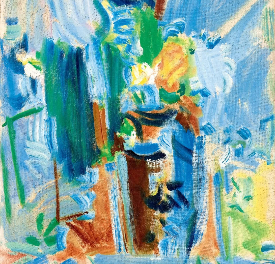 是次呈現吳大羽存世僅146件油畫之一的珍稀《花韻》,充分展現其「以韻噬象,蓄色成勢」的「勢象」美學。構圖以居中的瓶花為主體,由中心往外呈放射狀、結體分明的結構拉開序曲,當中帶著方向性的筆勢如浪花湧動、如蝶紛飛,將韻律感與歡快的樂音注入其中,展現吳大羽在文革後如雨過天青的光燦心境。在線與面的交織、及吳大羽最膾炙人口的藍黃對比用色中,一展花兒盛放、若萬丈虹光四射的強大精神力量。當中流轉的「氣」與「韻」直入人心。恰如其詩作:「飛羽掠天過影在,蓓蕊待發晴明枝。」帶給人勃發的向上力量。作品由現亞洲重要私人藏家在過去25年來細心珍存,並被收錄在盡乎全數藝術家出版畫冊中,是次釋出為難逢的購藏良機。
