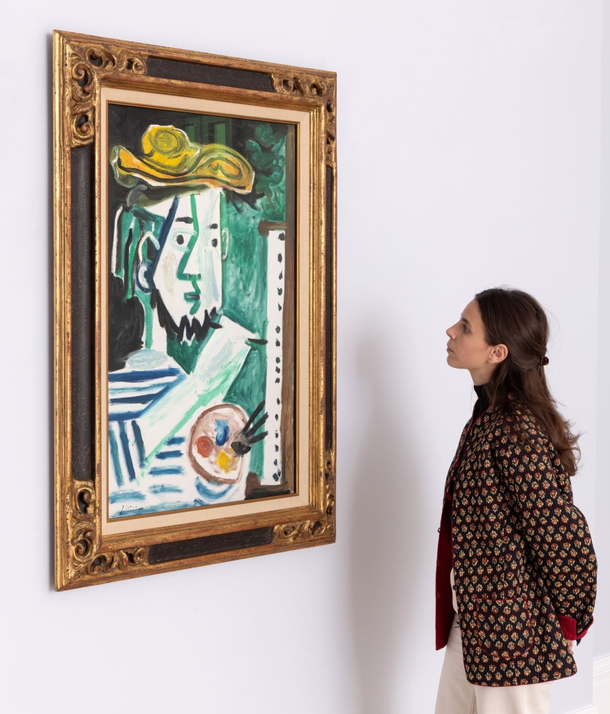 第二高價之作為畢卡索(Pablo Picasso)的《畫家》(Le Peintre),是創作於1963年的晚期之作,畫中人物身著條紋上衣極具藝術家的自傳意味。此作更是首度現身於拍賣市場的作品,由林宛嫻代買家喊價至低預估價6,600萬港元落槌,成交價為7,872.4萬港元。