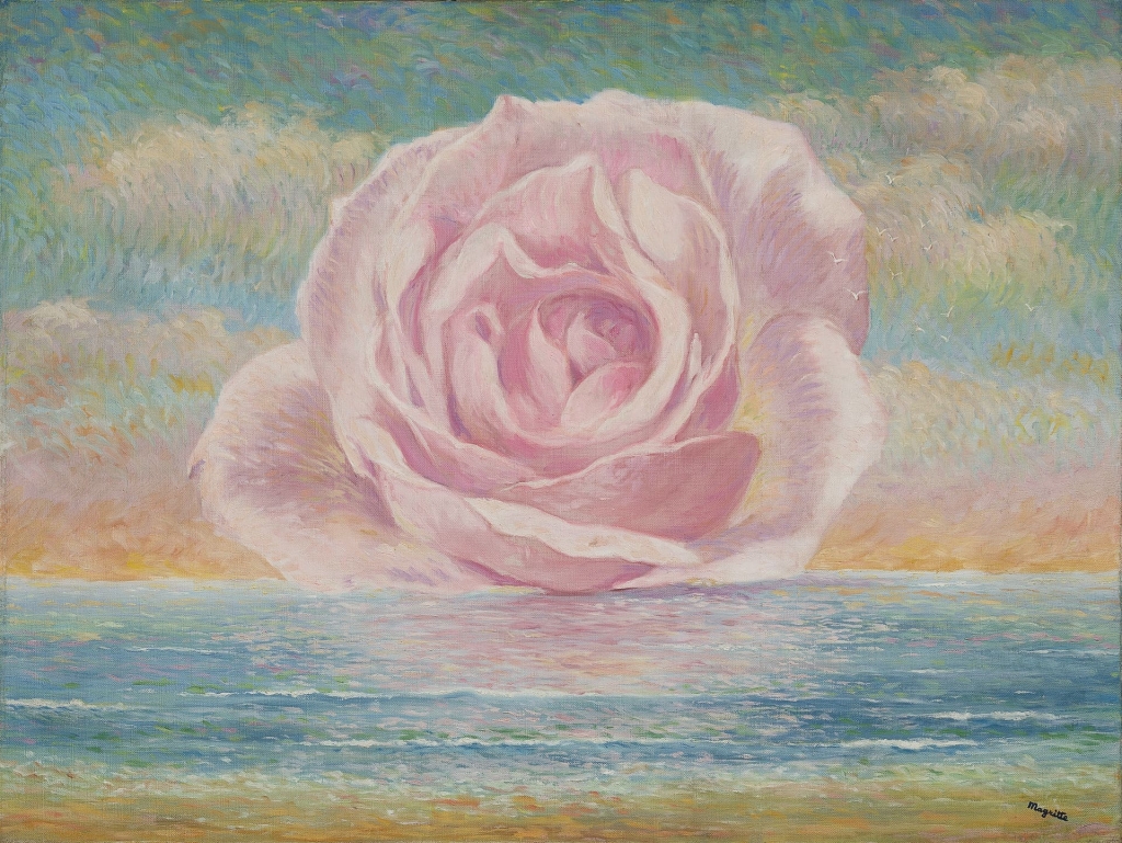 在西方藝術方面,超現實主義藝術家雷尼.馬格利特(René Magritte)的《遨遊》(L’invitation au voyage)即為拍前焦點之作。畫作名稱援用法國詩人波特萊爾(Charles Pierre Baudelaire)的一首詩題,該詩頌讚著玫瑰與日落之美。創作於1944年的二戰陰影之下,馬格利特在《遨遊》的構圖上也叩合詩句描述,以一朵巨大的玫瑰取代太陽,綻放著粉嫩柔和的光芒於遙遠的海面之外,為當時險峻的現實環境注入溫暖與希望的信念。此作以2,500萬港元起拍、3,500萬港元落槌,含佣金之後的4,272.5萬港元成交價,突破高預估價門檻,位居本場第三高價之作。
