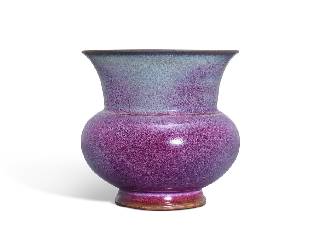 封面作品明15世紀初《鈞窯玫瑰釉渣斗式花盆》原屬潘寶珩(1862-1927)舊物,珍存潘家近百年,估價800萬至1500萬港元,由500萬港元起拍時,已有書面委託叫價至750萬港元,最終成交價1020萬港元。