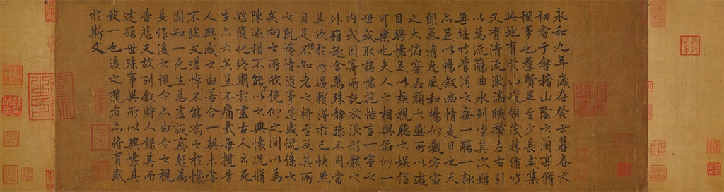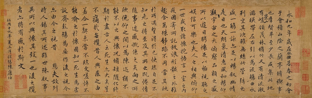 拍前古代書畫主管左昕陽表示,此卷是目前宋仁宋書法的傳世唯一作品,可見於多本著錄。此外,史書上多記載宋高宗臨寫蘭亭贈與臣子,本幅即為此一史實的例證。其三,則是在臨寫《蘭亭序》的歷史中,僅有這件宋代的作品傳世。