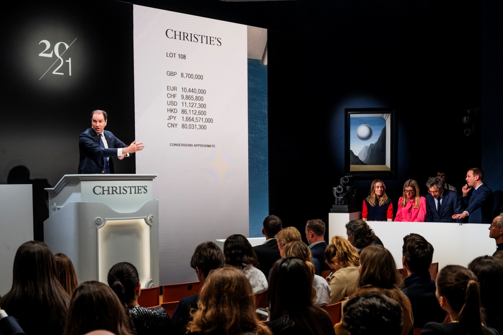 接續在「20與21世紀」之後進行的「超現實主義」晚間拍賣匯集13位藝術家之作,梳理超現實主義運動起源於象徵主義和達達主義,再到1920至1930年代在巴黎與布魯塞爾的鼎盛時期,以及戰後在歐洲與北美的發展演進。此專場共有25件作品上拍,僅一件流拍,成交率為96%,成交總額達4,807萬英鎊(約合6,148萬美元)。
