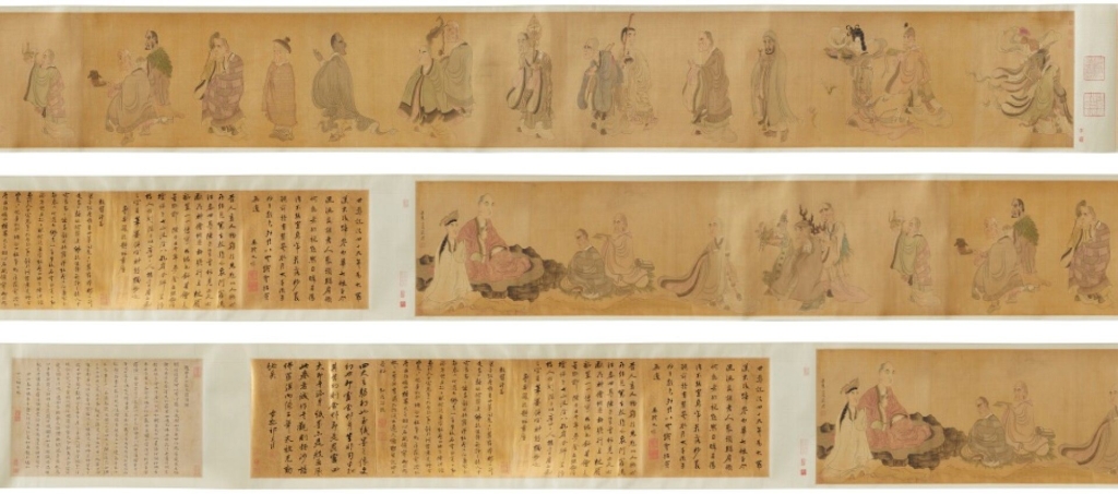 紐約蘇富比 陳洪綬(款)《羅漢圖卷》,絹本設色,156×369.8公分,估價5萬至7萬美元,成交價141萬6400美元。圖/紐約蘇富比