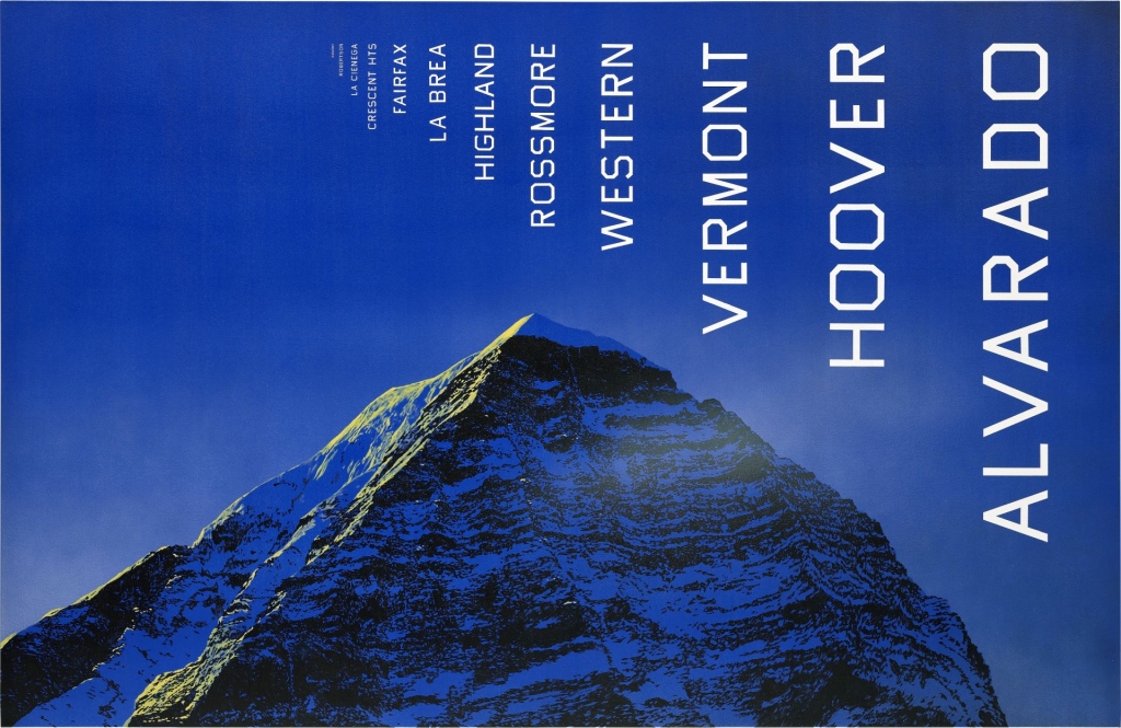第二高價為艾德.魯沙的《Alvarado to Doheny》,以490萬美元成交。藝術家常從記憶和生活所見的印刷品、廣告摘牌等媒介提取文字,創造了一種鮮明生活感的視覺詞典。在藝術史當中,山脈往往象徵崇高,而艾德.拉斯查卻在畫面上拼寫洛杉磯繁忙的交通要道名稱,打破傳統風景畫的安靜莊嚴,反映其創作並不是再現形象而是創造對比,促使觀者重新考慮文字與影像之間的關係。