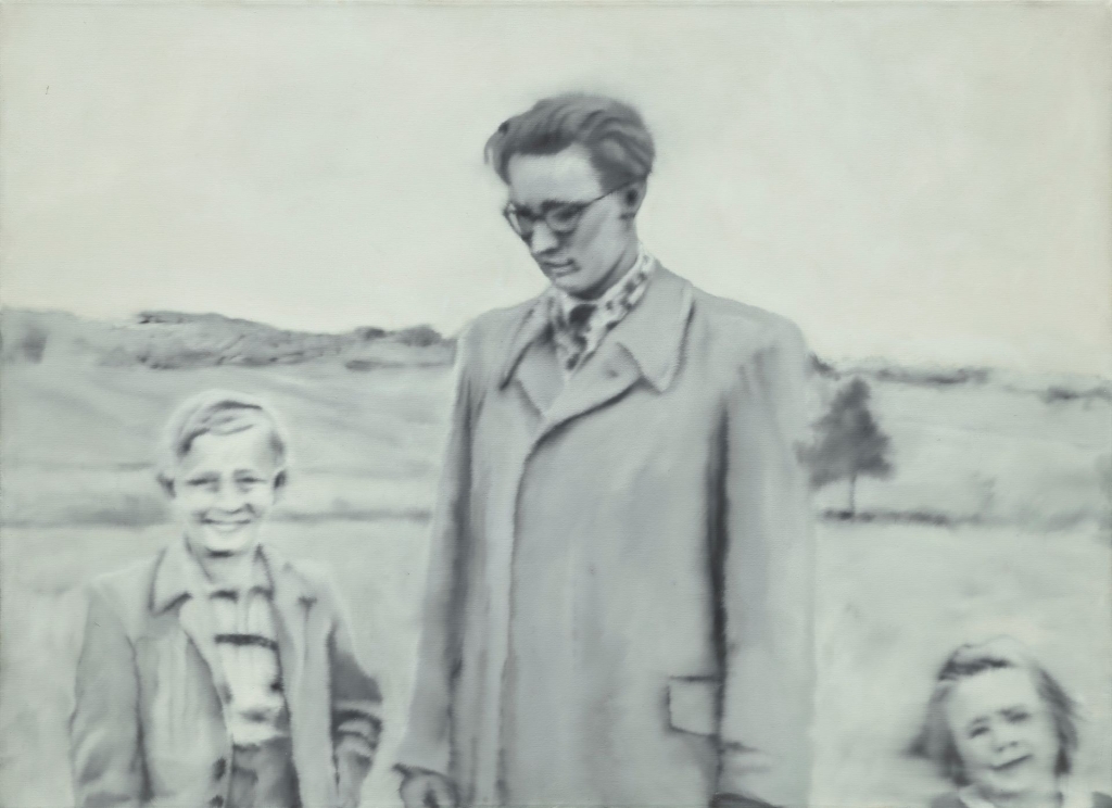 格哈特.里希特創作於1966年的《男人與兩個孩子》(Mann mit zwei Kindern)屬於早期的家庭照片系列,以灰階暈染畫風重現同為藝術家的摯友西格瑪爾.波爾克(Sigmar Polke)年幼時與家人的合照,為兩位藝術家在當時進行一系列的創作實驗期間所留下的珍稀且動人的記錄。此作為首度現身拍場,以417.4萬美元成交價排名本場第四。