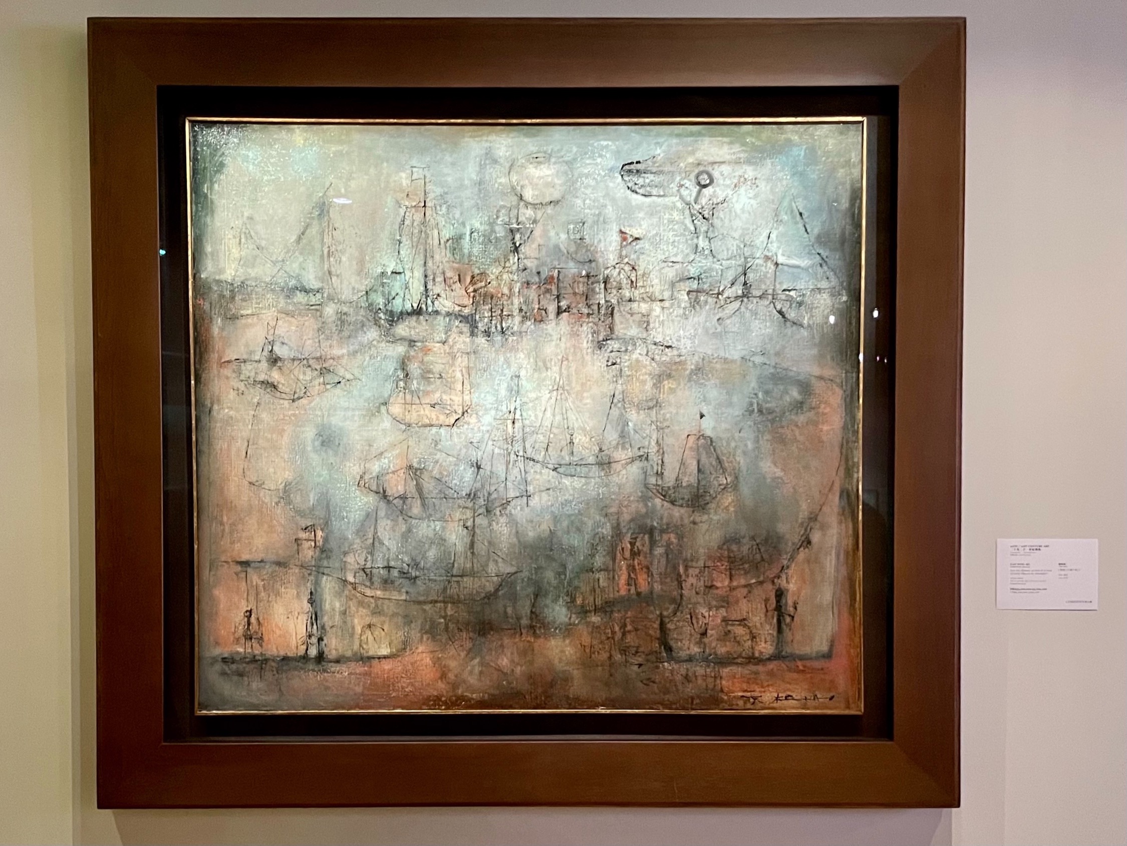 亞洲藝術市場中領銜的華人藝術家趙無極,在這次的秋拍中所呈現的重要作品《無題(月滿千帆)》,畫面中承載著法國的影響和中國傳統水墨的線性創作的筆法,畫作裡的帆船與人物藝術家以稚樸的趣味暗藏其中。然而此作因受藝術家保羅・克利(Paul Klee)的啟發作,因此也被視為「克利時期」的重要之作。有趣的是,整幅作品雖然是以油彩畫布為媒材,趙無極卻利用渲染的顏色技法,帶領藏家視角的游移,沉浸於創作之中。