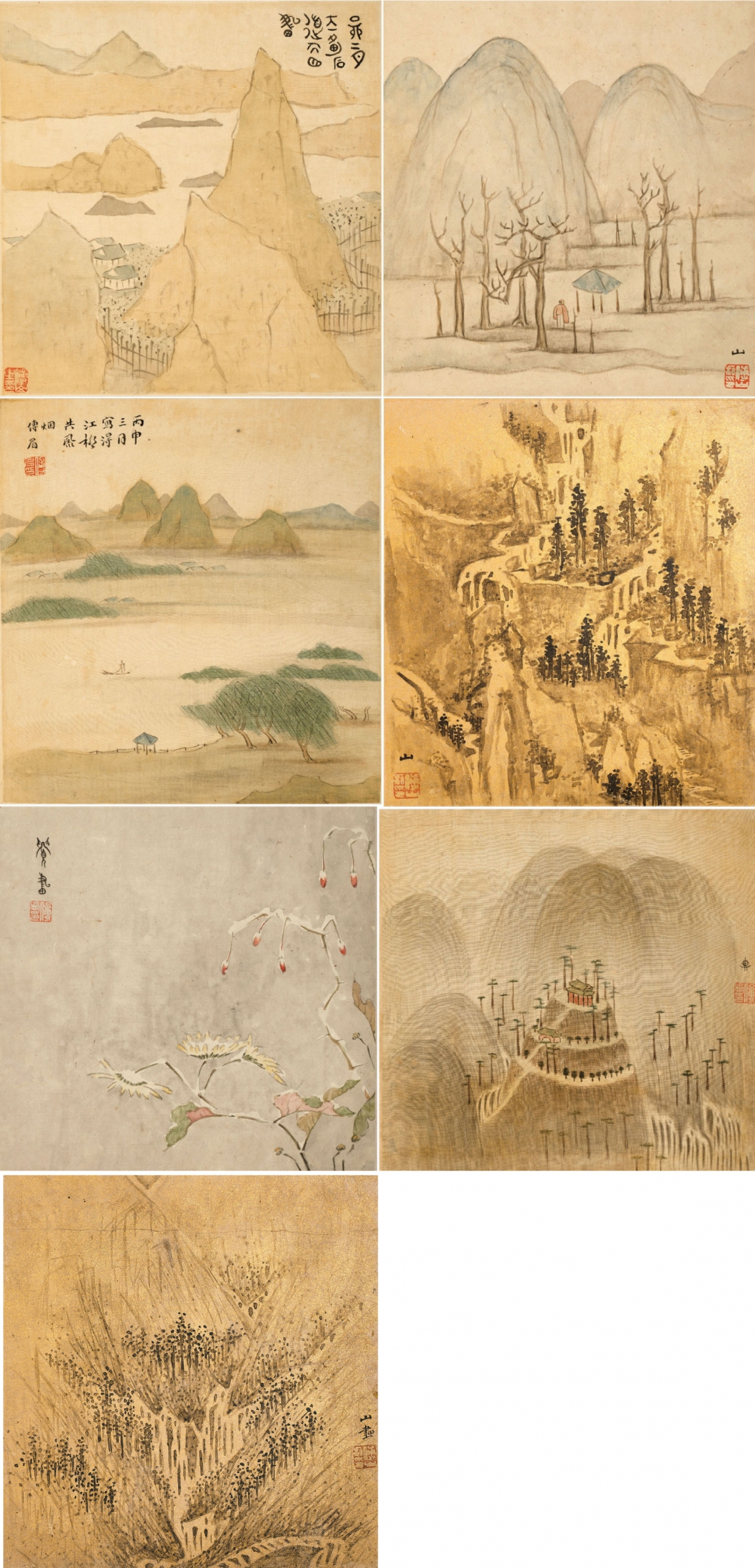 設色、水墨金箋紙、絹本 冊頁六開及散頁一開