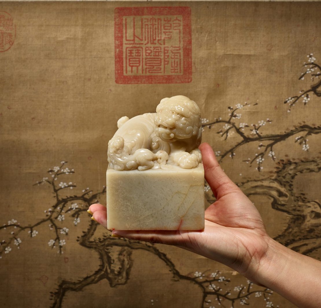 本季香港蘇富比器物工藝品類以乾隆帝御寶《太獅少獅鈕壽山石璽》領銜,估價待詢。拍前即引起熱烈關注,為超級巨星,由4900萬港元起拍,多支電話委託買家競奪,以一口100萬港元競價階梯有序上升,歷時16分鐘,最終由中國瓷器及工藝品部資深專家李佳電話委託之亞洲私人藏家競得,以1億3100萬港元落槌,成交價1億5333萬4000港元,迎來全場掌聲。刷新寶璽亞洲拍賣紀錄,亦超越去年於香港蘇富比春拍以1億4569萬1000港元成交的清乾隆帝御寶交龍鈕白玉「紀恩堂」璽,成為蘇富比史上最高價成交的寶璽。