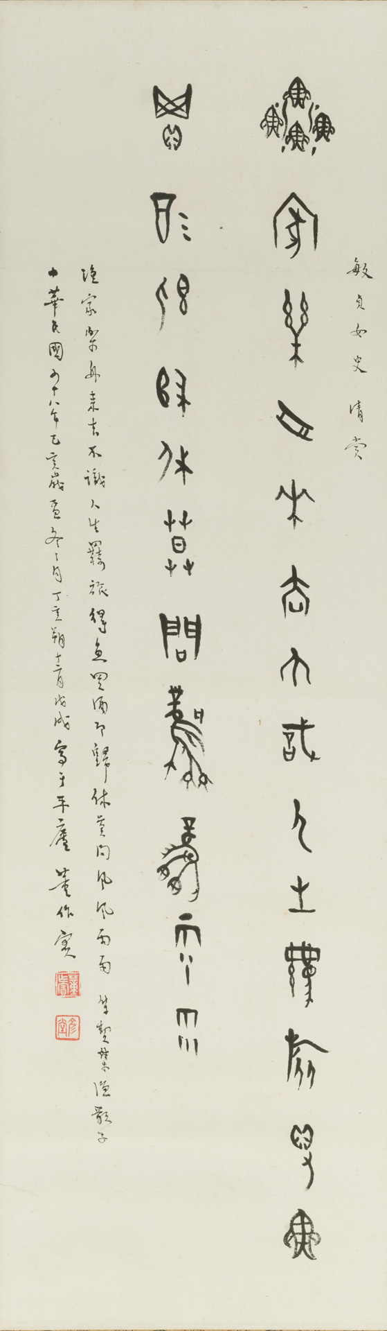 戈敏貞女士於甲骨文似情有獨鍾,所藏以董作賓寫贈居其四,其中《甲骨文漁歌子》(拍品編號603)具其上款。