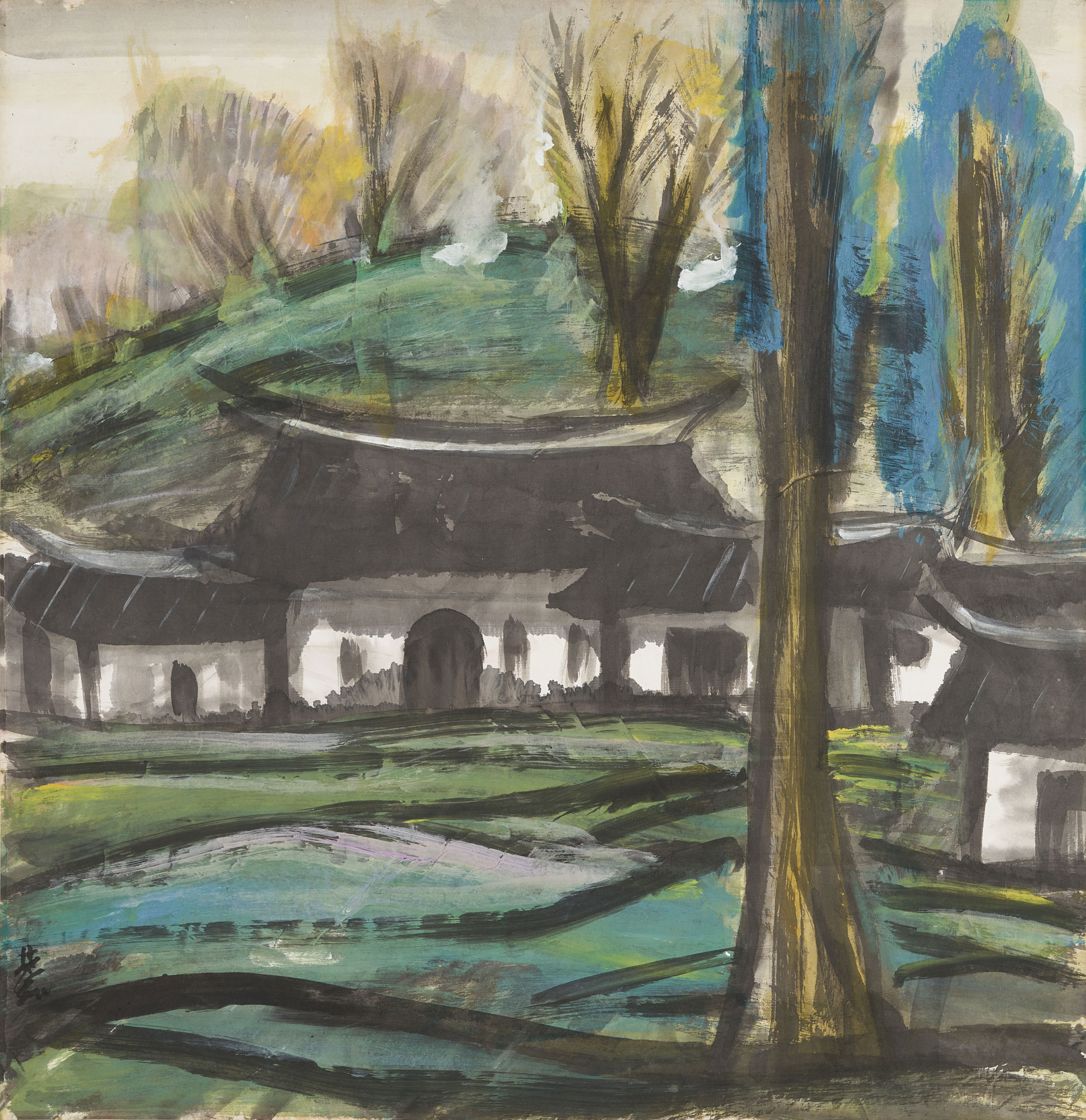 在已知的傳世作品中,林風眠以敦煌為題的創作僅有四件,《舞》、《舞蹈》、《伎樂》、《飛天》,皆作於1950年代,現庋藏於上海中國畫院。