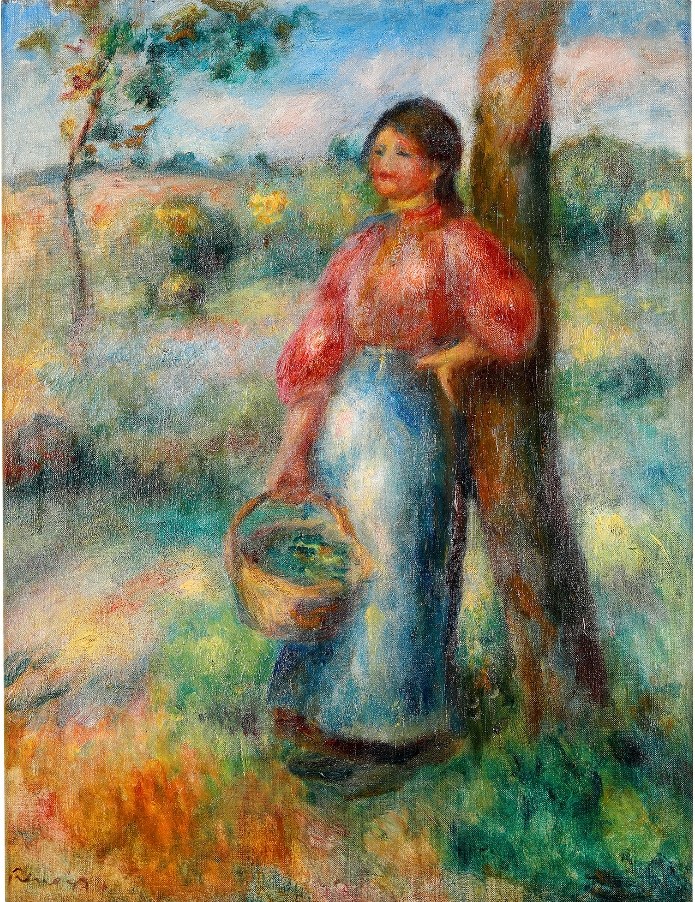 皮埃爾─奧古斯特.雷諾瓦,《手提籃子的農婦》,41×32.5 cm,約1902。估價:HK$7,000,000-9,000,000。(富藝斯提供)