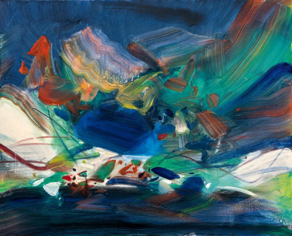 完成於2000年的《海岸》,展現甫於前年獲法蘭西藝術院士殊榮的朱德群攀達人生、藝術成就高峰的心曠神怡與激昂,並見證他經年遊歷自然、在東西藝術殿堂汲古潤今的成果。在那湛藍又變化萬千的畫境之中,朱德群以源自東方書法的飛白走筆,形成纖毫畢現、行雲流水的骨法形跡,構建出如「海浪扶鵬翅,天風引驥髦」的壯闊奇景,呈現如「巨石穿空,驚濤拍岸,捲起千堆雪」的戲劇張力。當中濃烈的青綠、橙黃之色則伴隨筆刷的層層動勢,逐步滲入深邃的普魯士藍色域之中,在指涉風雲際會的同時,亦化為道道霞光,共譜天地和諧的大化之境。在朱德群一生的創作中,以「海」為主題的作品十分罕見,僅只10件,而此次上拍的《海岸》為當中畫面最具戲劇性、用彩最為繽紛的一幀。作品來源有序,最早出自在巴黎推廣朱德群創作的提加諾畫廊(Galerie Patrice Trigano),為其晚年超脫「無形之象」的經典之作,值得再三品味。