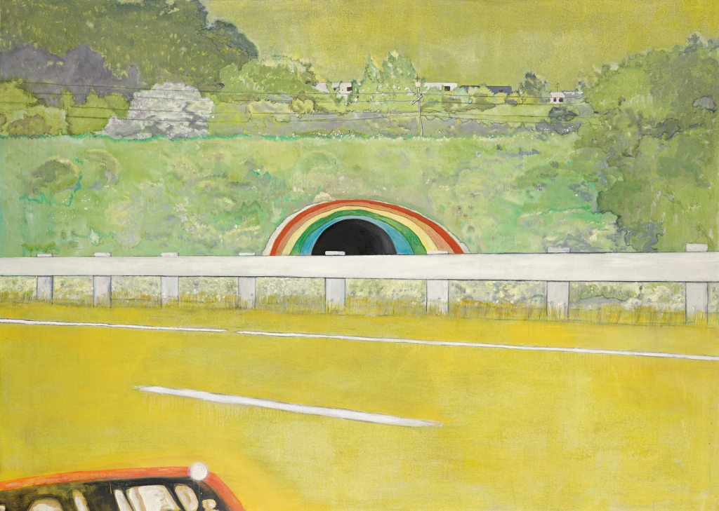 彼得.多伊格(Peter Doig)的《鄉村搖滾(後視鏡)》,以成交價7,420.2萬港元排名當代藝術夜場亞軍。(蘇富比提供)